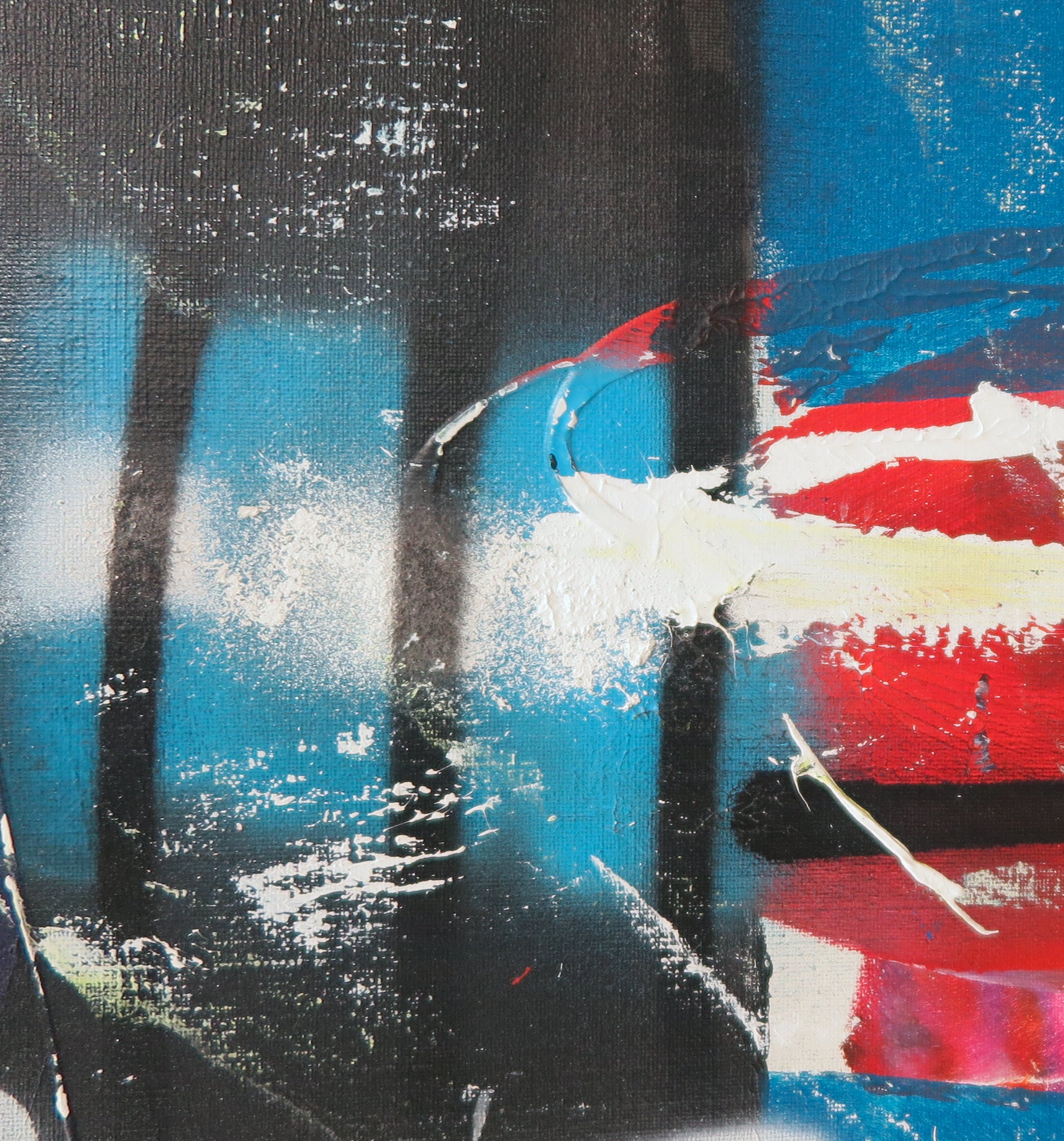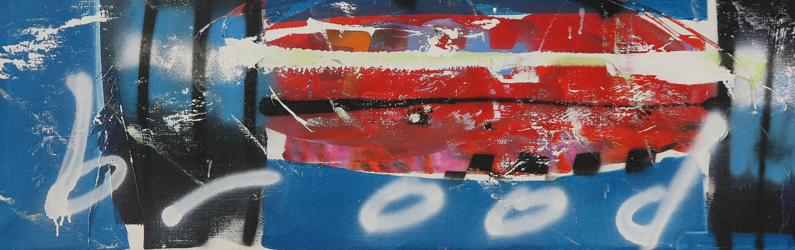 Groot expressief doek door Herman Brood, getiteld "IJs breekt".