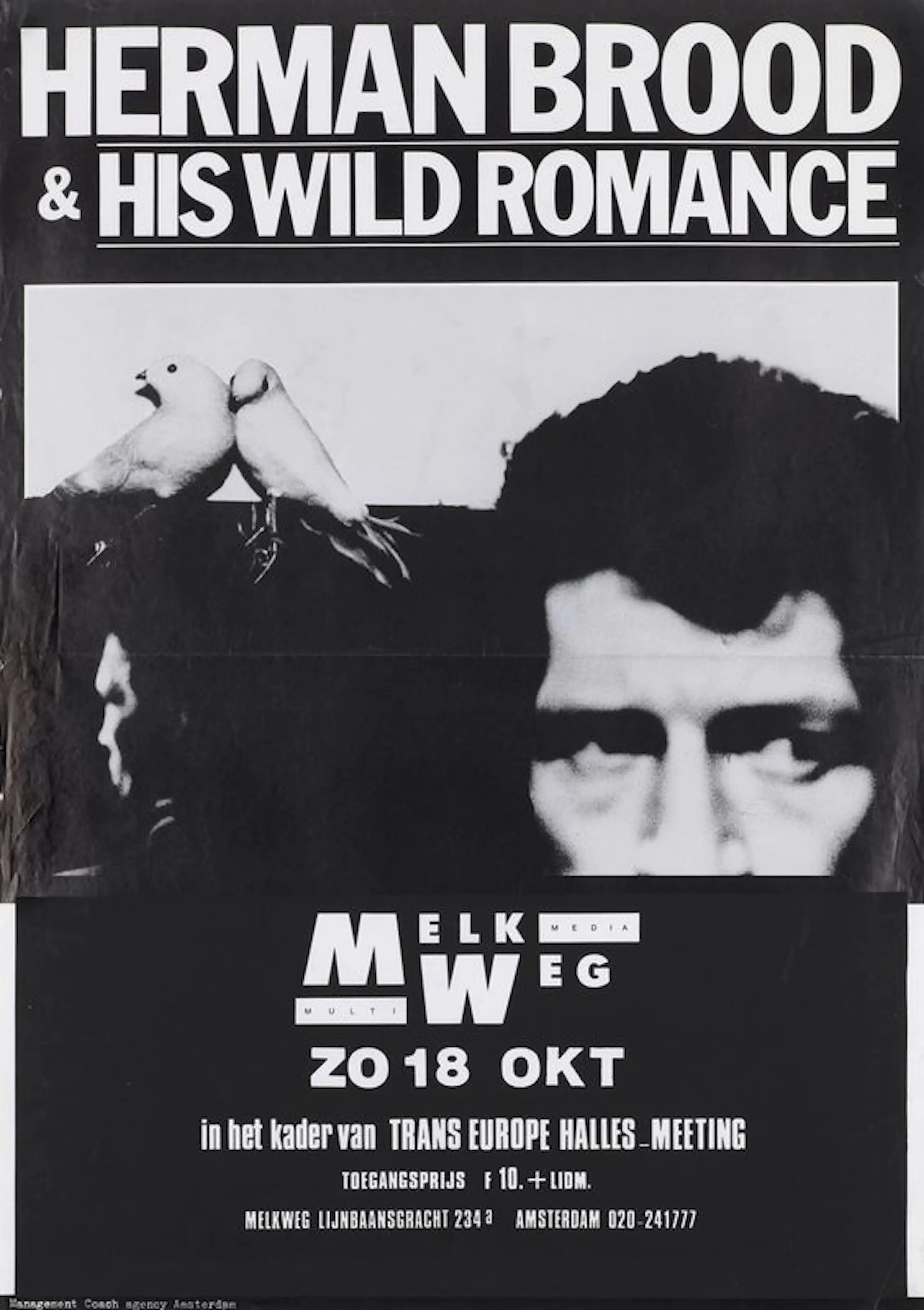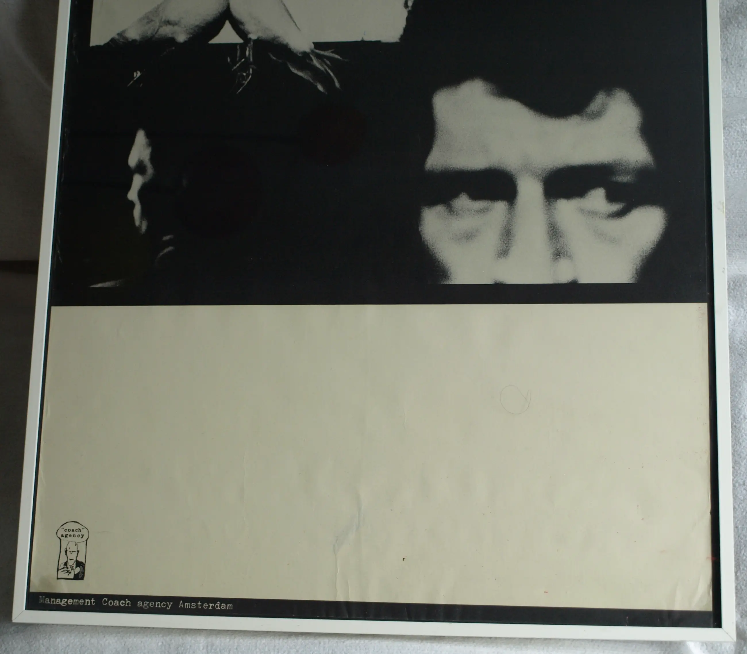 Een affiche uit (waarschijnlijk) 1988 van de popband Herman Brood & His Wild Romance. Het affiche werd gebruikt door muziekzalen en poppodia om reclame te maken voor een optreden van Herman Brood en zijn band. Op het onderste witte gedeelte van het affiche kon de naam van het poppodium, het adres en datum van het optreden vermeld worden. Zie de laatste foto voor een voorbeeld van zo’n affiche. Het affiche werd uitgegeven door het managementbureau “Coach Agency”. -Het affiche is ingelijst in een eenvoudige metalen lijst met plexiglasplaat. -Afmetingen: Lijst, 71 x 51 cm. Affiche, 69 x 48,5 cm. -Herkomst: Uit de inboedel van een verzamelaar. -Conditie: Het affiche heeft kreuk. De lijst heeft slijtplekken. Zie ook alle foto’s voor een eigen indruk. Kan zo aan de muur.