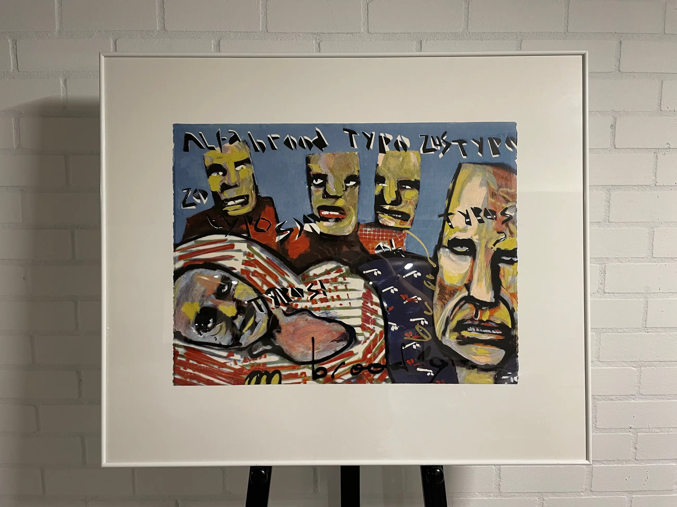 Herman Brood heeft de zeefdruk gesigneerd met een goudkleurige marker. De zeefdruk is ingelijst zonder passepartout en enkel opgelegd op witte kartonnen achtergrond (karton zuurvrij).