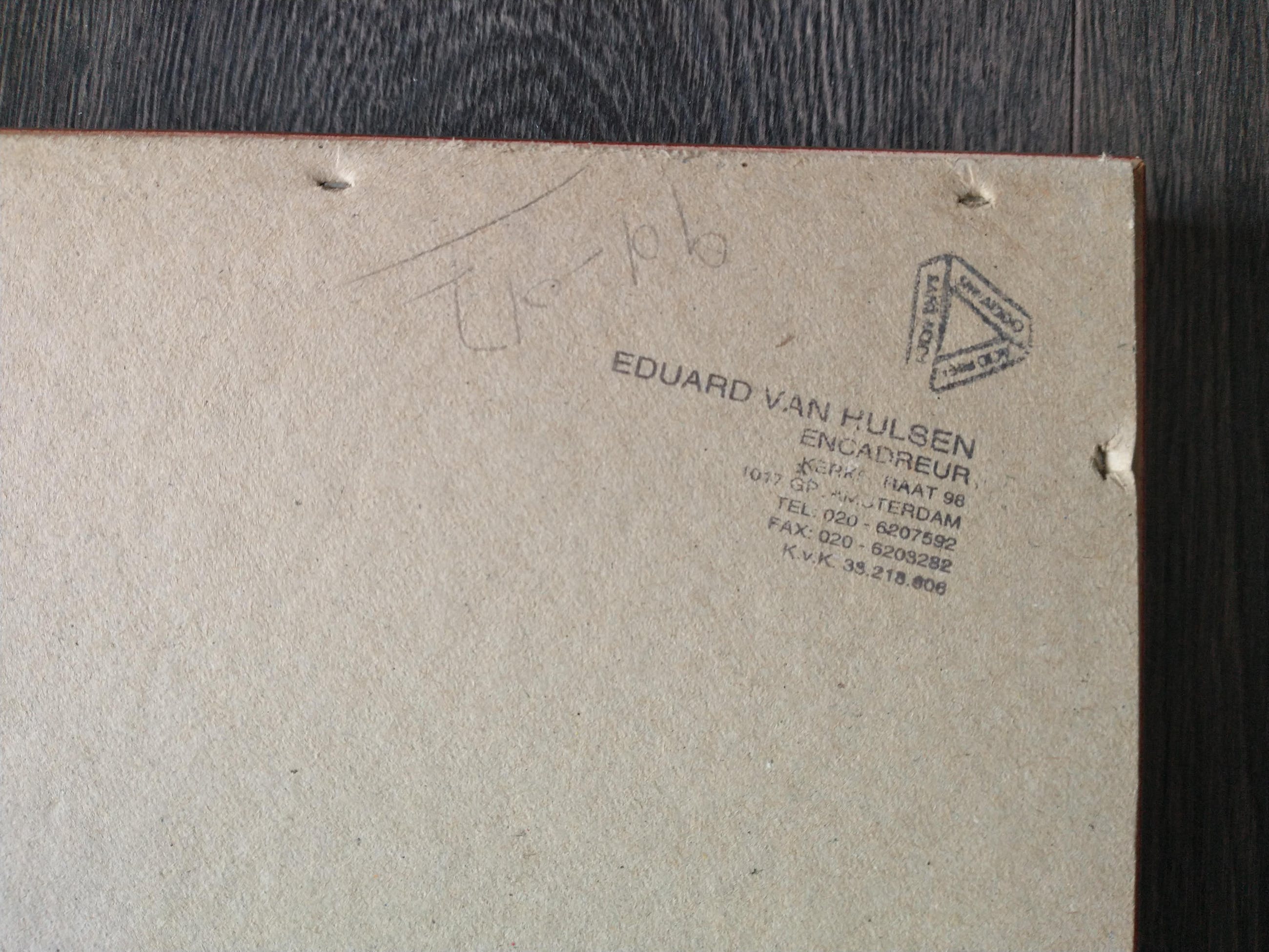 Het werk is ingelijst in een zilveren houten lijst door Eduard van Hulsen.