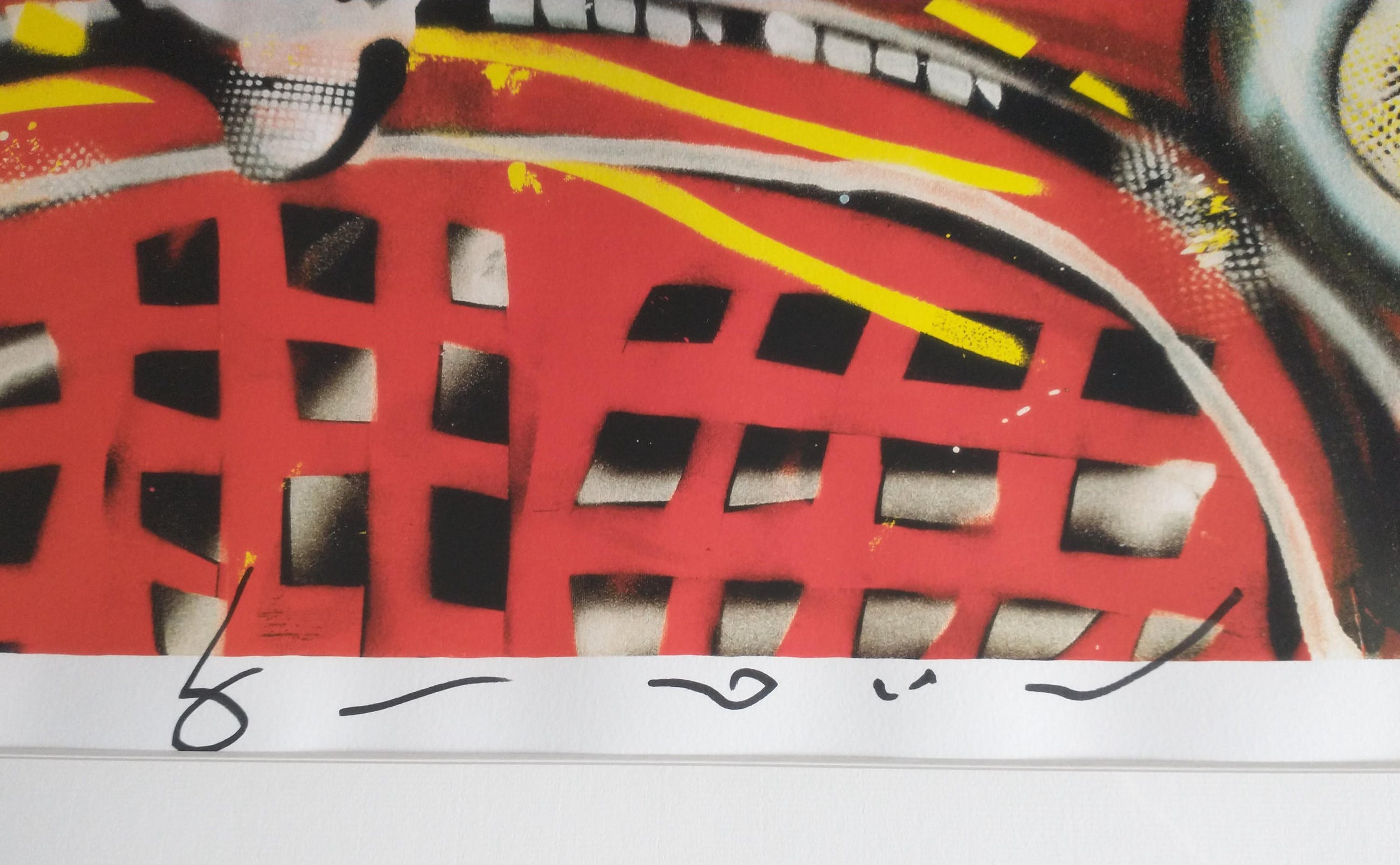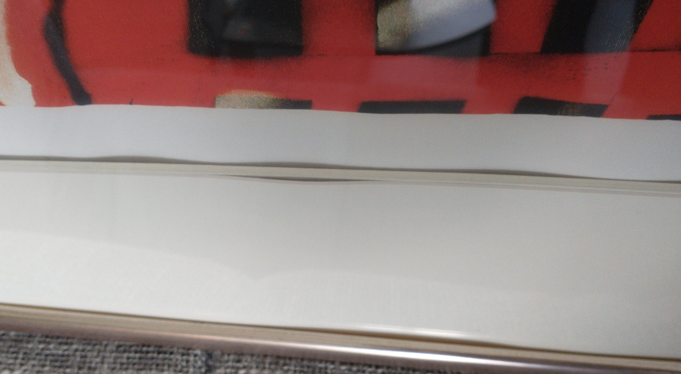 De zeefdruk zelf is in prima conditie, het passe partout laat aan de onderzijde een klein beetje los maar dit kan goed herstelt worden (zie foto's)