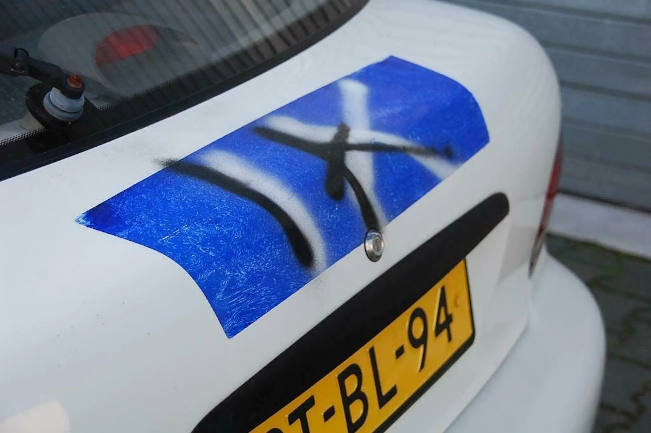 Dit is de auto die in 1996 live in de TV show van Catherine Keyl is gespoten door Herman Brood. Er zijn rondom de auto diverse werkstukken aangebracht. De grootste staat op de motorkap en is een afbeelding van Catherine. Hij heeft diverse technieken gebruikt en gesigneerd op het dak. De auto was splinternieuw en is daarna in de blanke lak gezet. Alle afbeeldingen zijn nog in goede staat. Er is wel gewoon met de auto gereden maar die heeft geen schade gehad. Er is filmmateriaal van bij de auto, een bevestigingsmail van Catherine Keyl en natuurlijk de foto's. Voor de serieuze verzamelaar of ideaal voor in een showroom. Een uniek stuk!