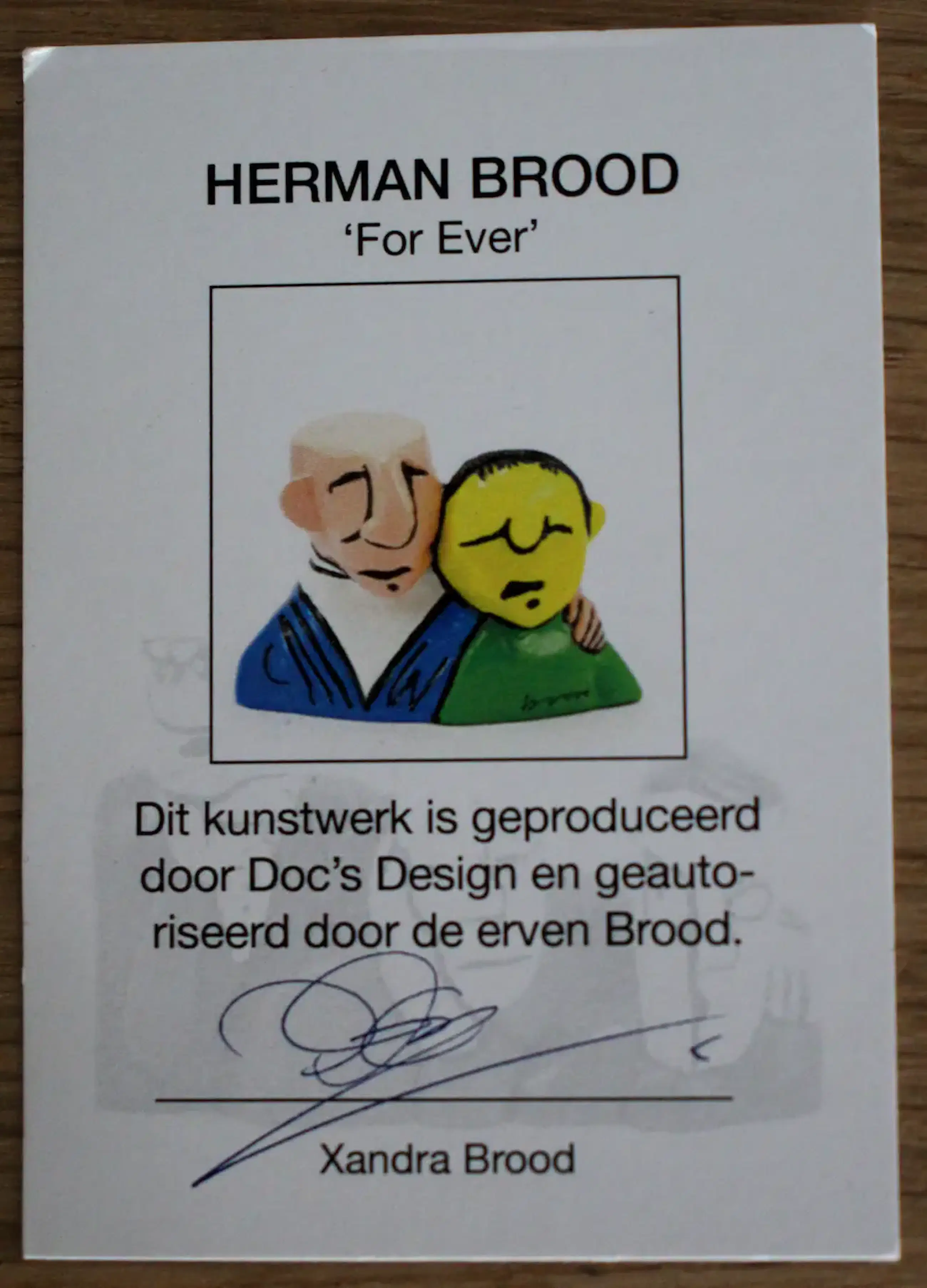 Het beeld wordt geleverd met certificaat, gesigneerd door Xandra Brood.