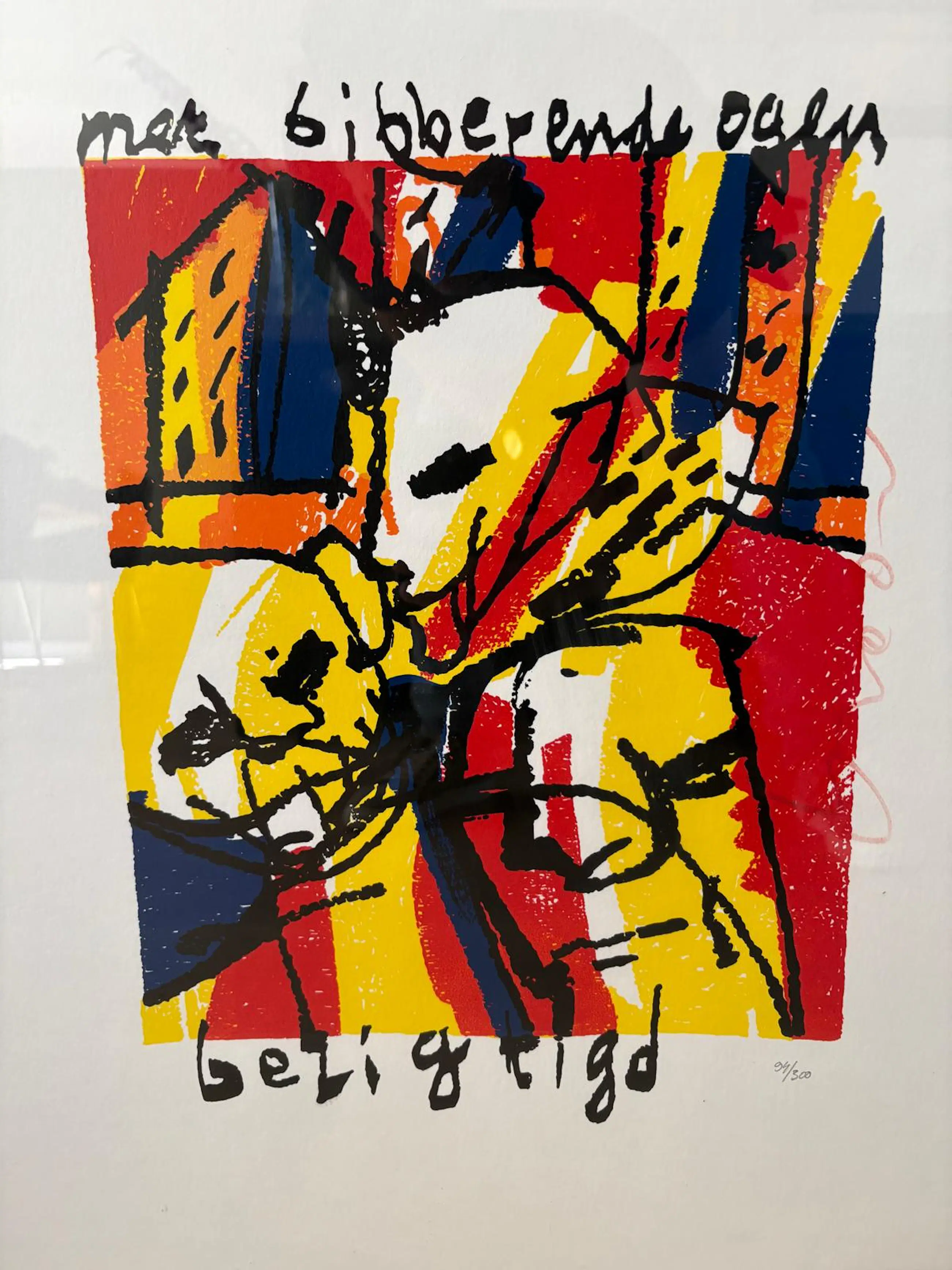 Zeefdruk van Herman Brood genaamd 'Met bibberende ogen bezigtigd'.