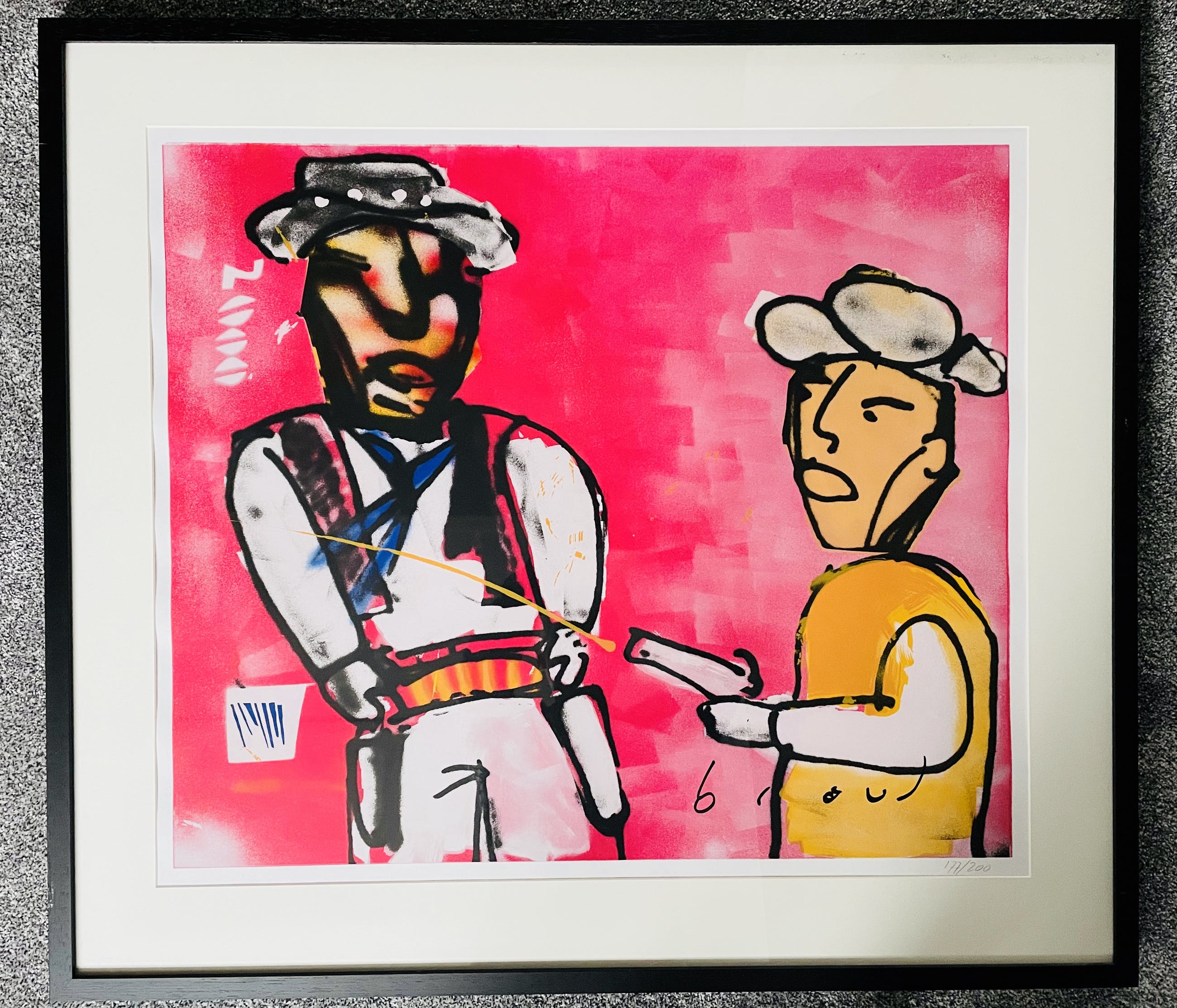 Eeen zeer fraaie Herman Brood voor de echte Broos liefhebber. Billy the Kid is een kleurrijk geheel in een fraaie lijst. Dit werk maakte eerder deel uit van de kunstveiling eigen collectie. Dus het werk heeft een betrouwbare bron. 100% Herman Brood -