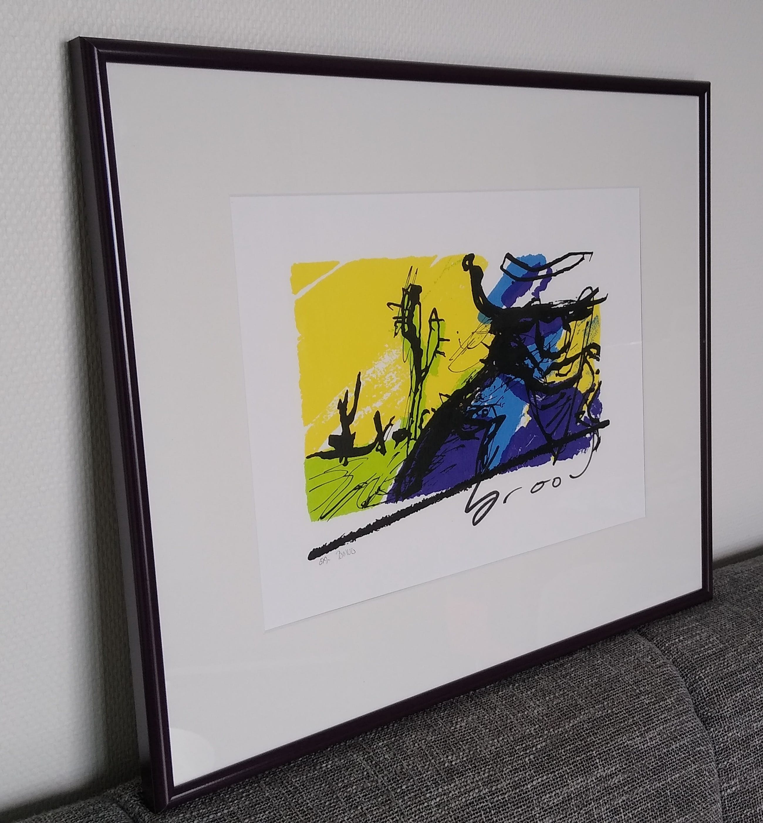 Uiteraard handgesigneerd met marker en goed ingelijst, kan zo aan de muur.