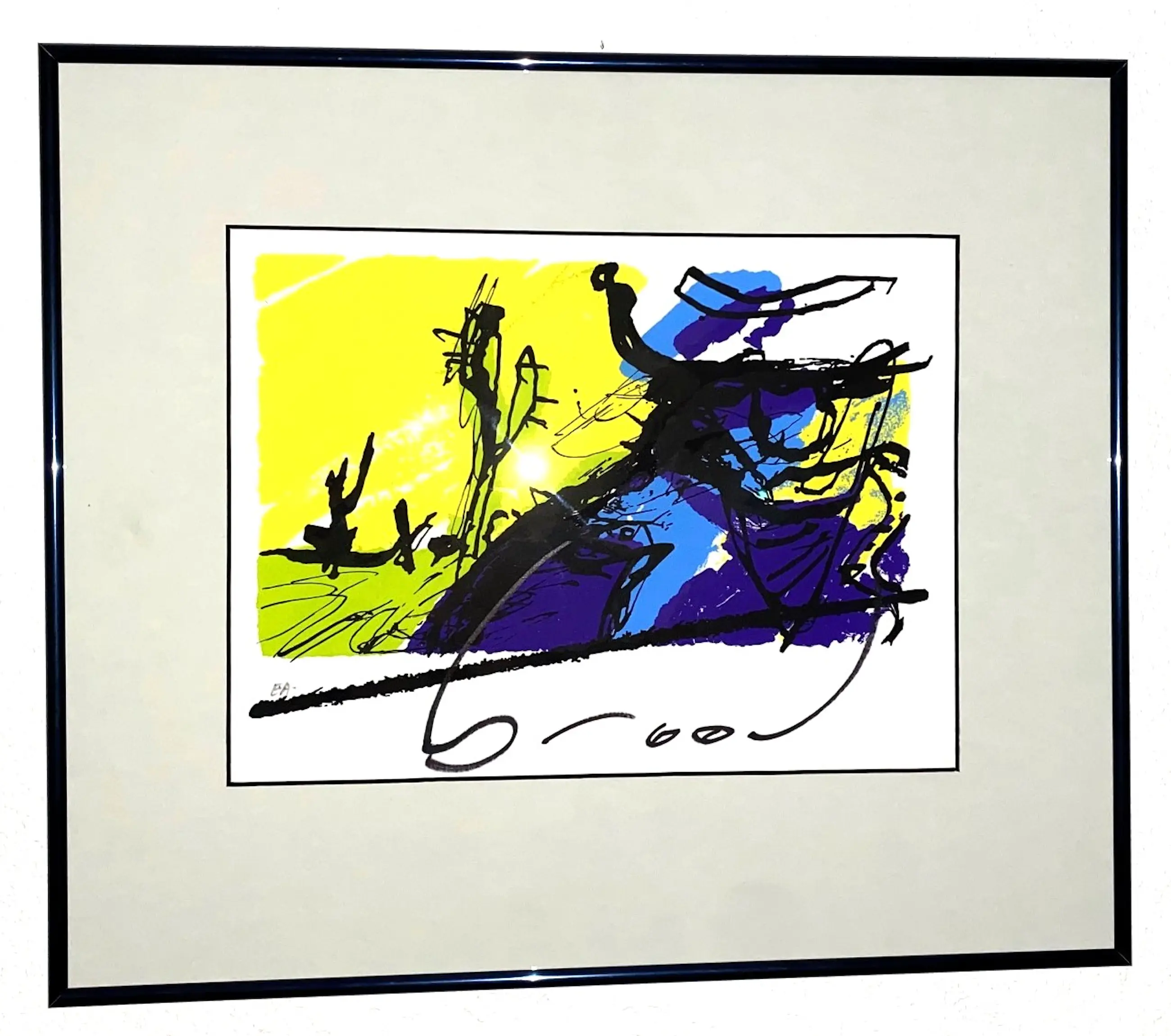 Zeefdruk Bono van Herman Brood. Handgesigneerd en genummerd, Epreuve d'artiste (EA). De zeefdruk is in uitstekende staat, lang bewaard in een map, niet eerder ingelijst en dus volledig kleurecht. Dit werk is op de markt nauwelijks nog voorhanden. Nu dus hier en ophangklaar!