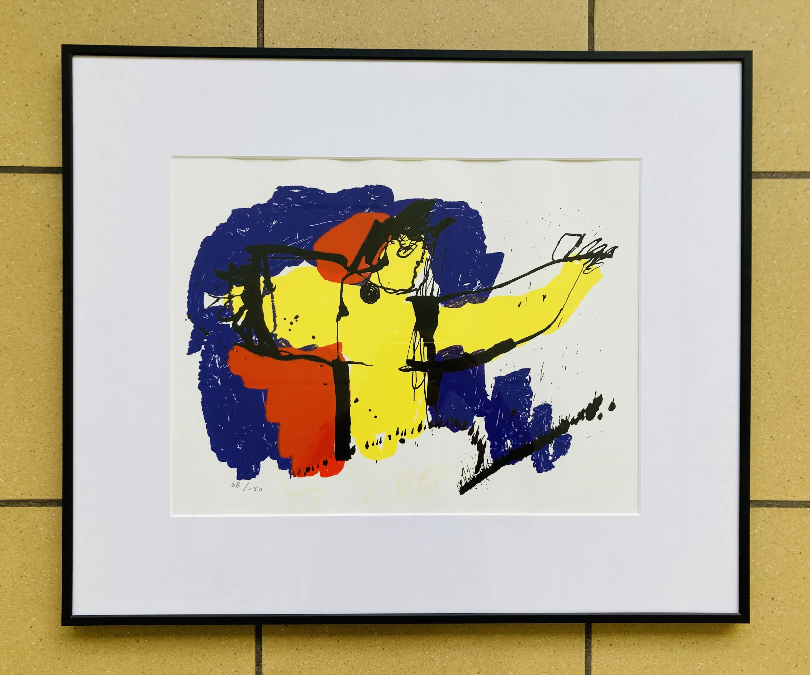 Een prachtige zeefdruk van de Nederlandse kunstenaar Herman Brood (1946 - 2001). Het werk verkeert in uitstekende conditie en is handgesigneerd door de kunstenaar. De lijst is nog erg goed en staat prachtig bij de zeefdruk. De kleinste afmeting is van de passe-partout. Gesigneerd met stift ( en iets verzacht door de zon).