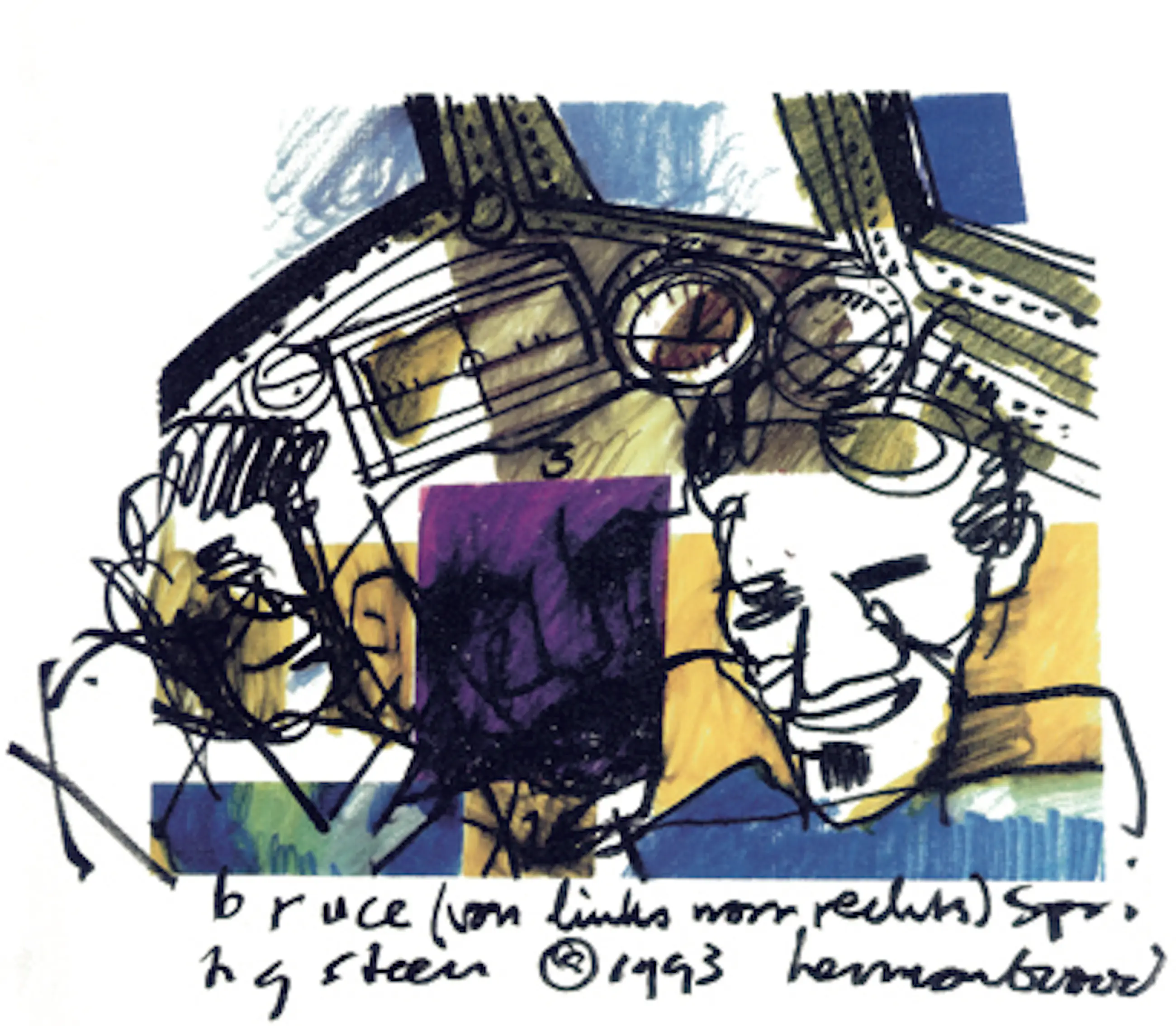 Fraaie offset litho van Herman Brood uit de beroemde POP-serie. Herman Brood maakte in 1993 in opdracht van een muziekmaatschappij een prachtige serie litho`s van diverse popartiesten. Dit is Herman`s afbeelding van Bruce Springsteen.