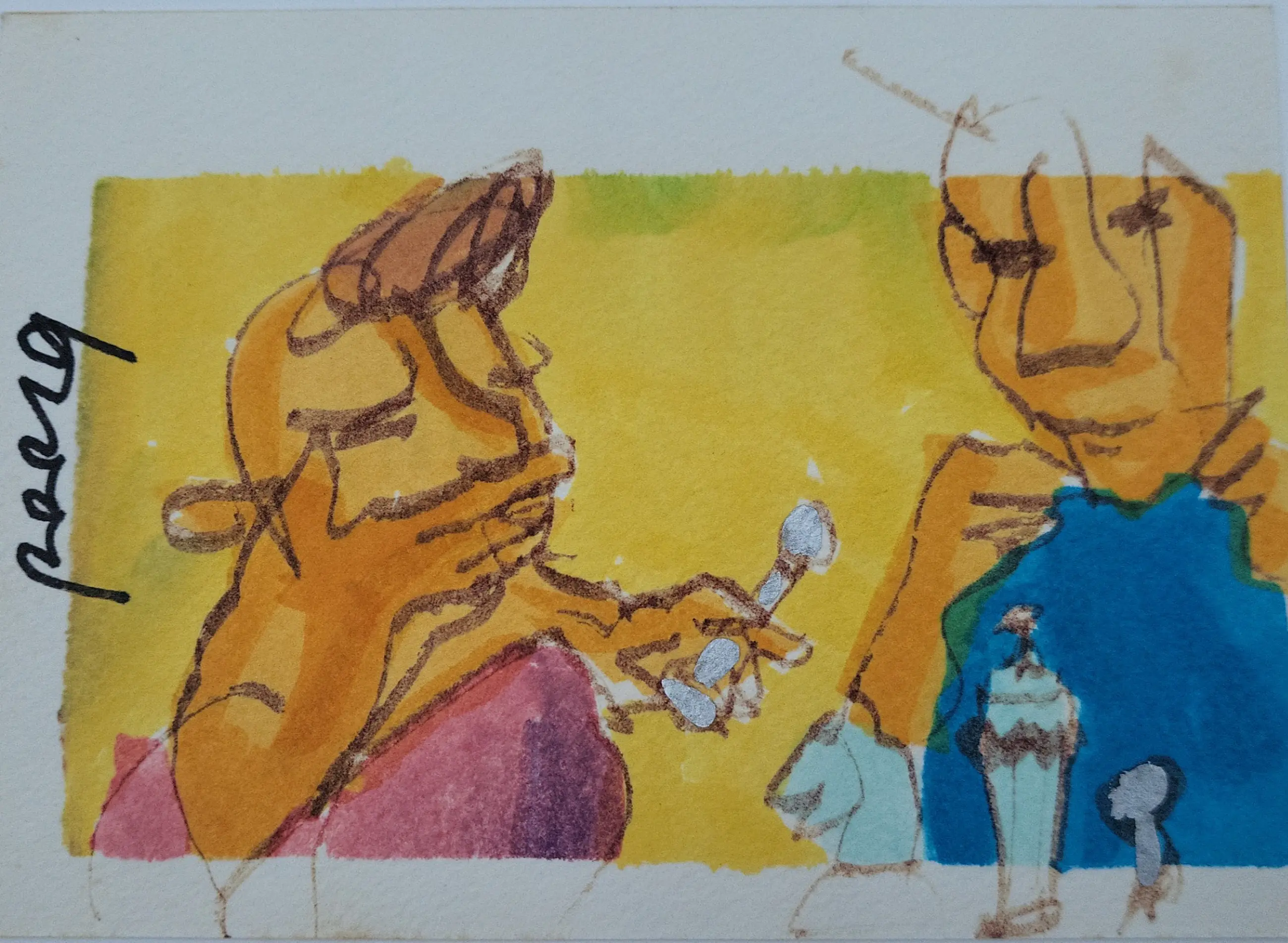 De grote tekening meet maar liefst 32,5 x 29,5 cm. en de twee kleinere meten elk 15 x 10,5 cm.