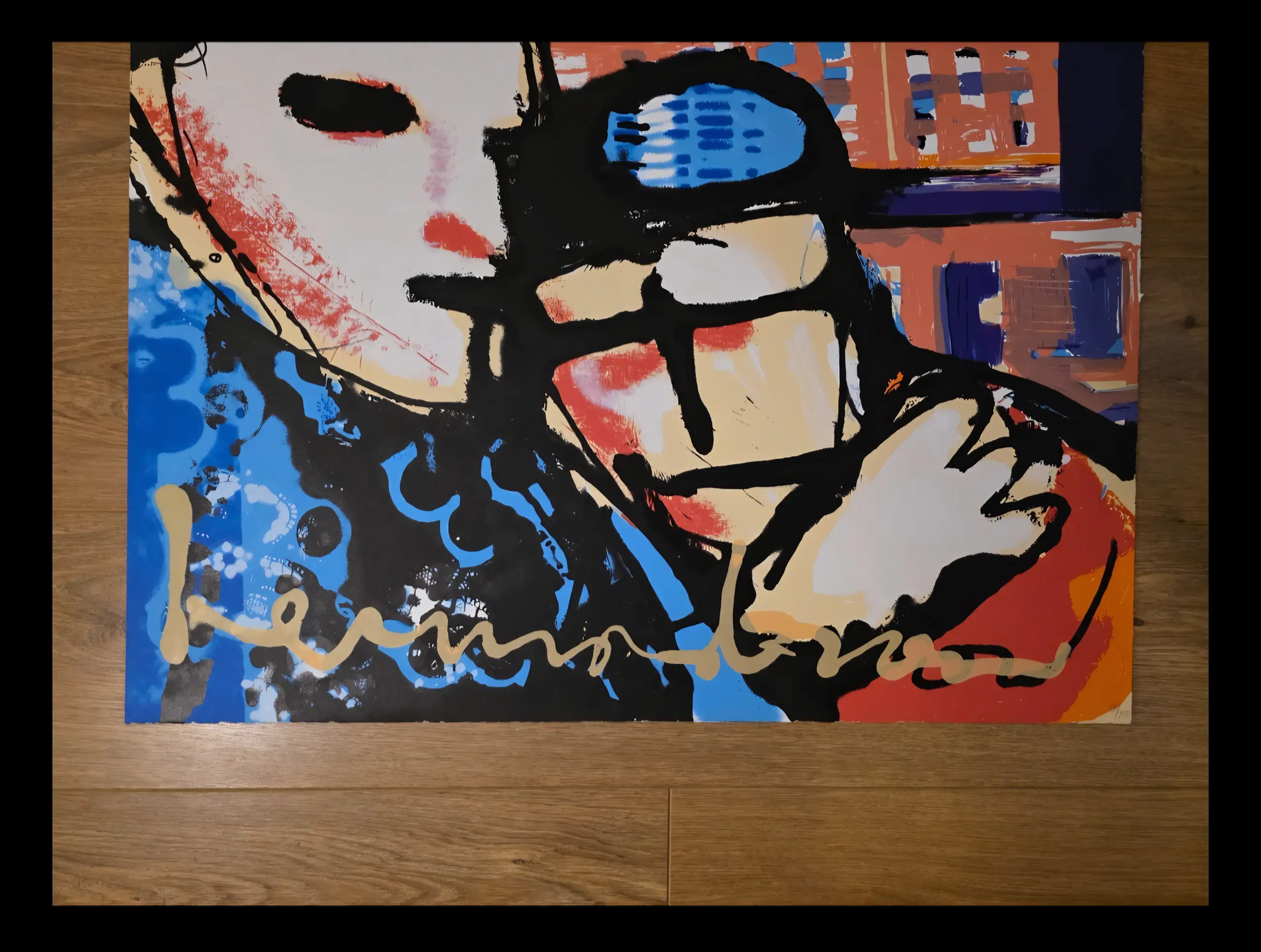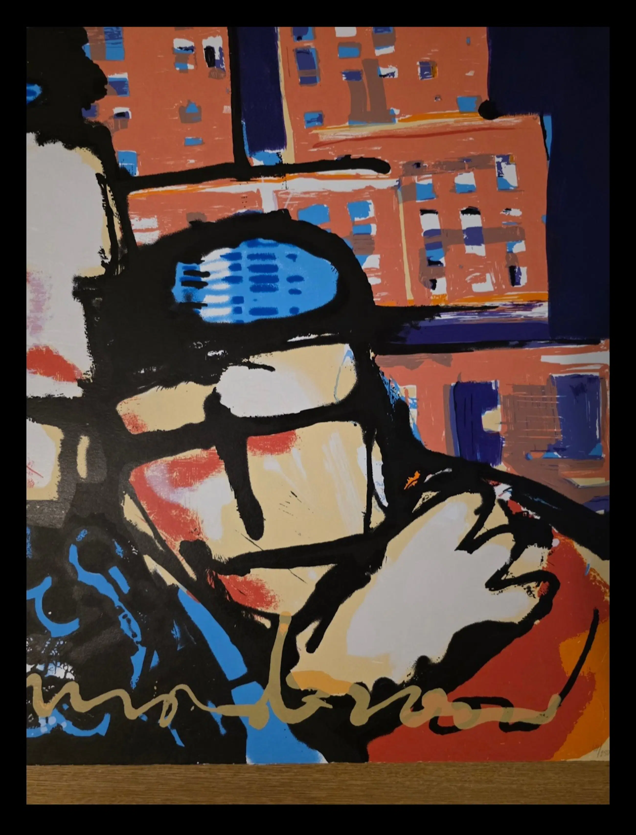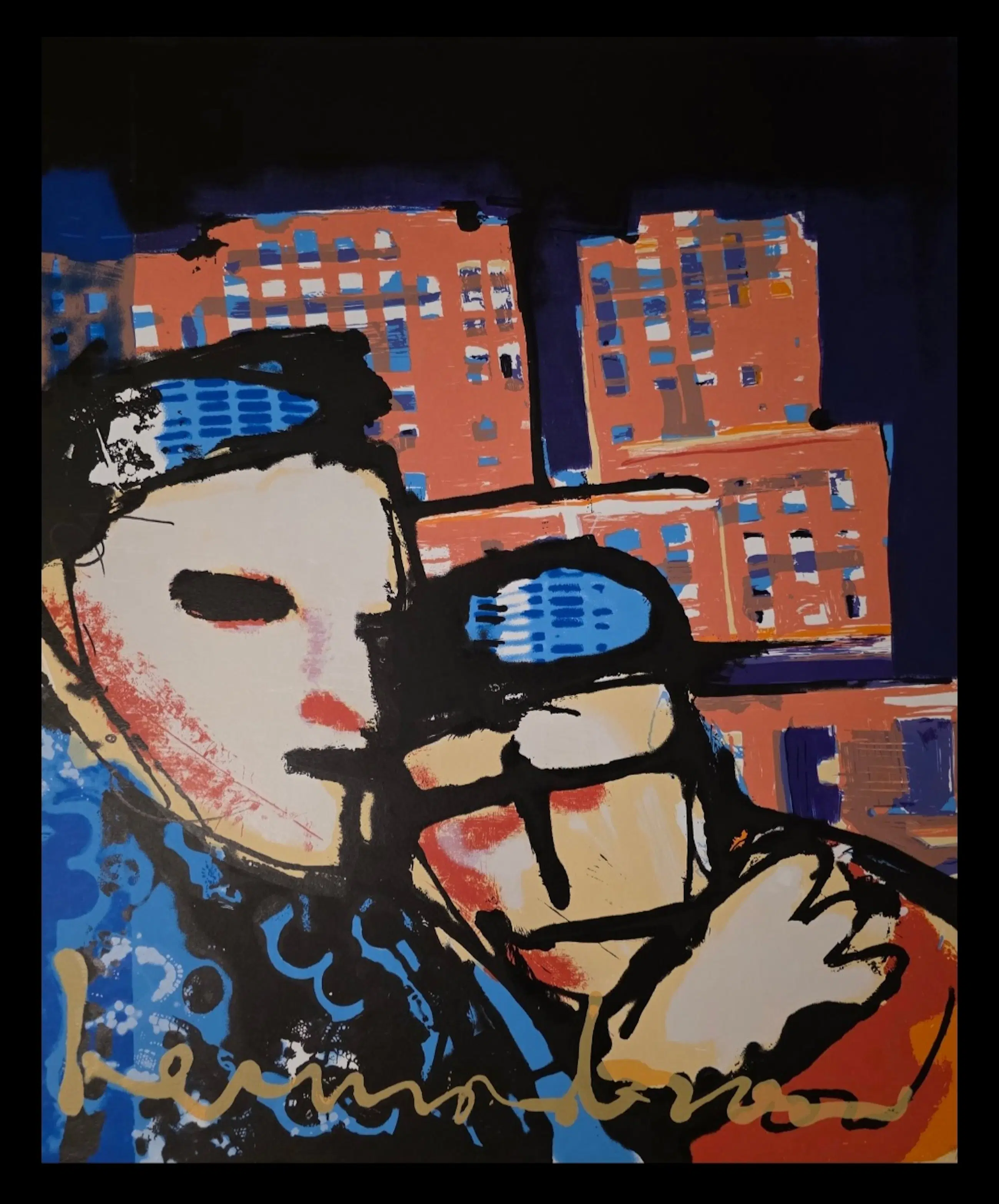 Originele handgesigneerde zeefdruk van Herman Brood genaamd City love. Het betreft hier nr. 48 in een gelimiteerde oplage van 250 exemplaren. Met zwarte marker gesigneerd door Herman Brood midden links.