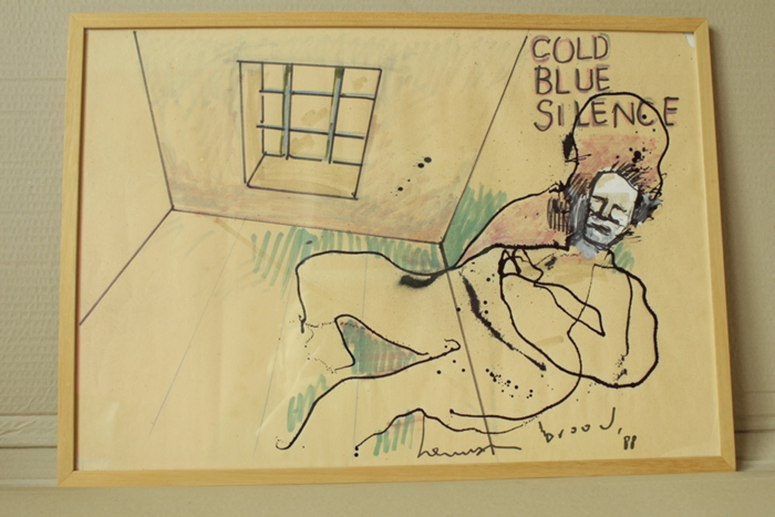 Herman Brood: Cold Blue Silence - handgesigneerde collage en gemengde techniek - 1988
