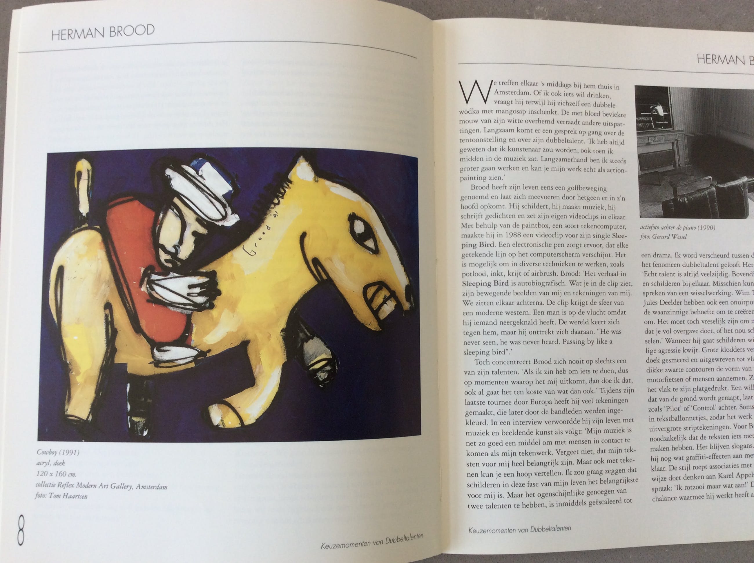 Uniek origineel schilderij van Herman Brood. Het schilderij is gemaakt voor een expositie over dubbeltalenten, n.a.v. hiervan is een boek uitgegeven waar dit schilderij op de cover staat afgebeeld en nogmaals in het boek met begeleidend schrijven, uniek! De herkomst is geheel bekend en het. Het boek krijgt u er vanzelfsprekend bij.