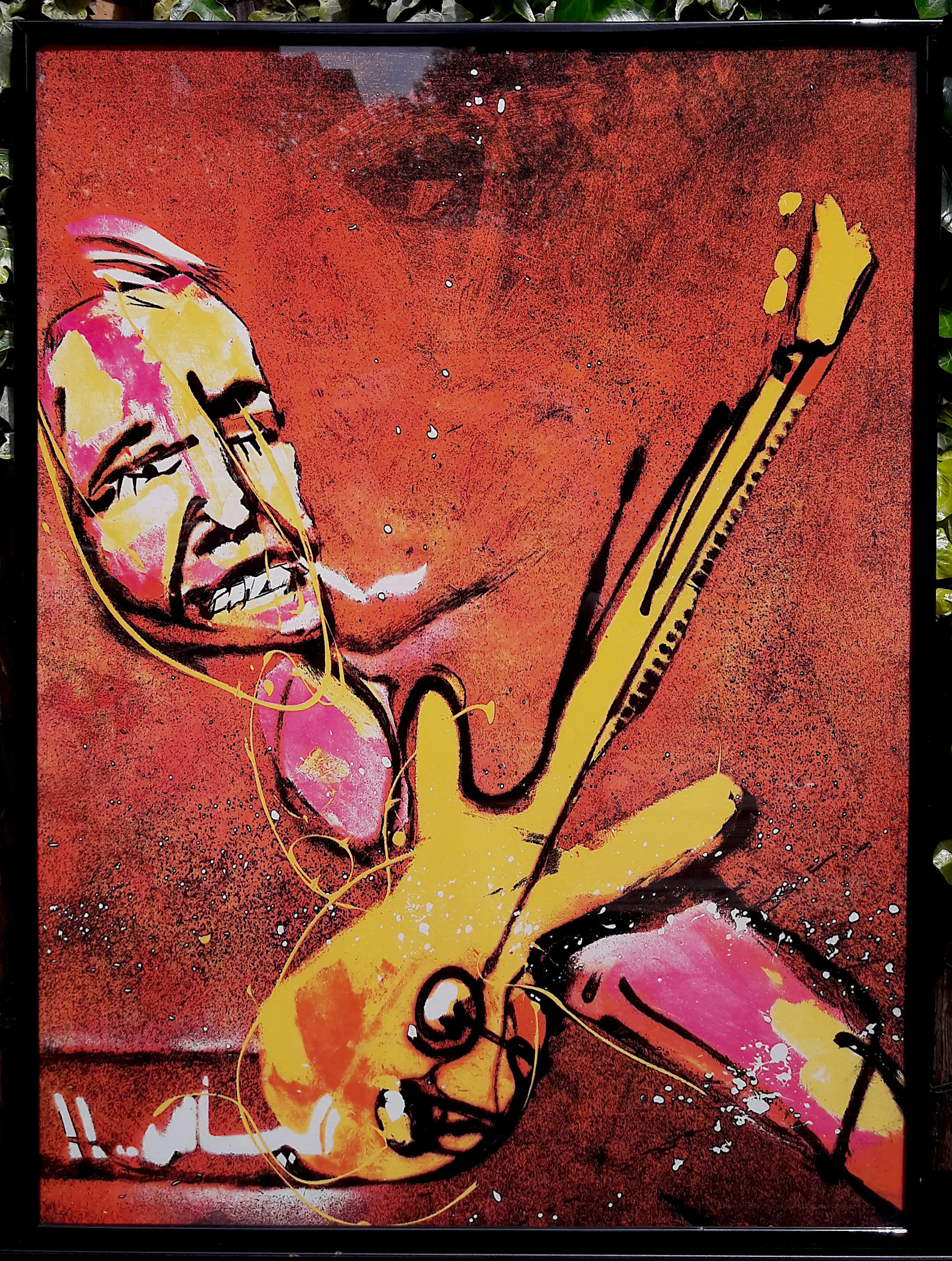 De reguliere uitgave van de bassist was tegen een zwarte achtergrond (zie foto 5). Maar Brood deed een voorstudie middels een aantal drukken in verschillende kleurenschema’s. Dit is de proefdruk tegen een oranje-rode achtergrond, waarvan er bij mijn weten geen tweede is. Herkomst: inboedel Free Record Shop na faillissement. Een echte must have voor elke serieuze Brood verzamelaar!