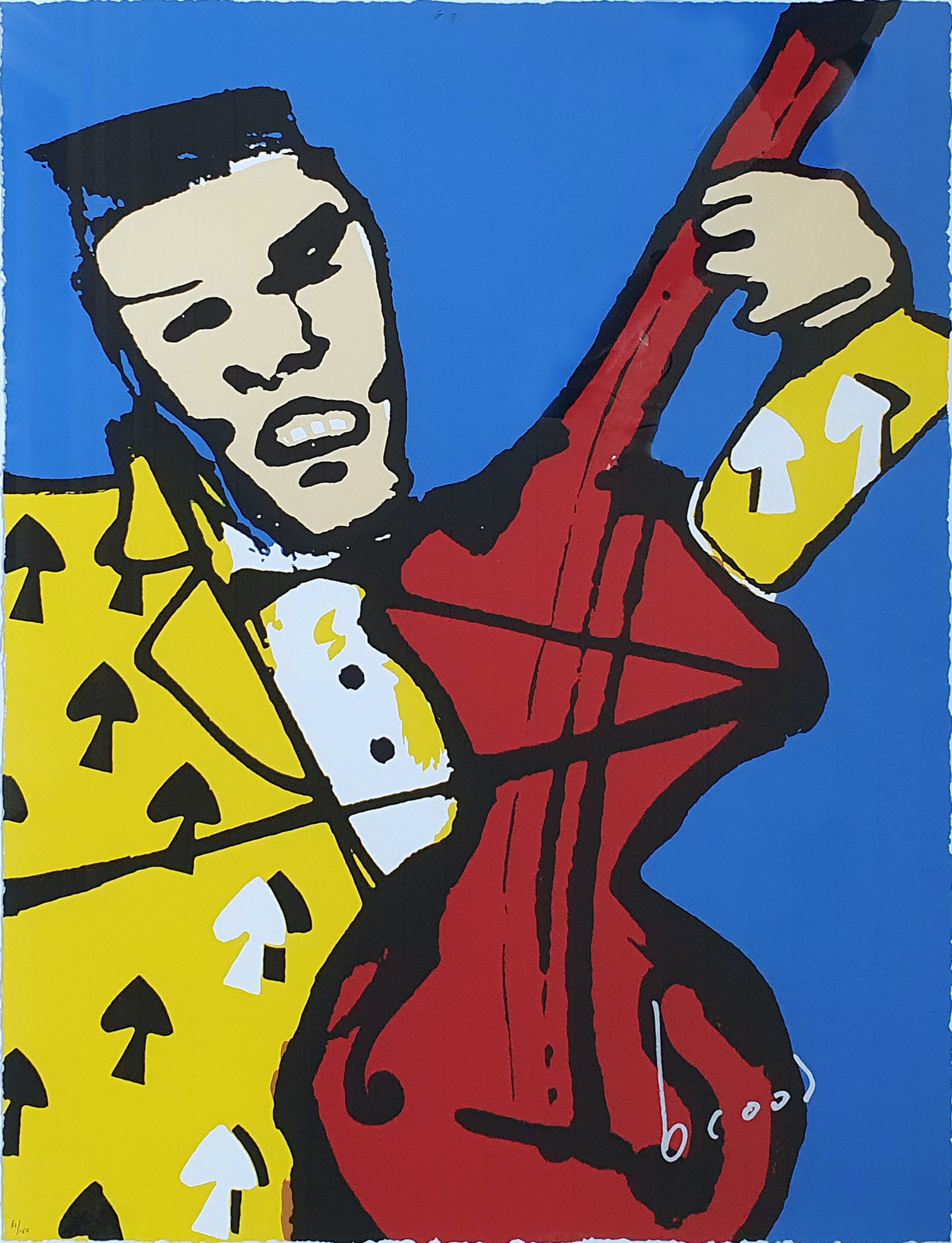 Zeefdruk van Herman Brood met de titel 'De Cello'. Het werk is rechtsonder met de hand gesigneerd door de kunstenaar.