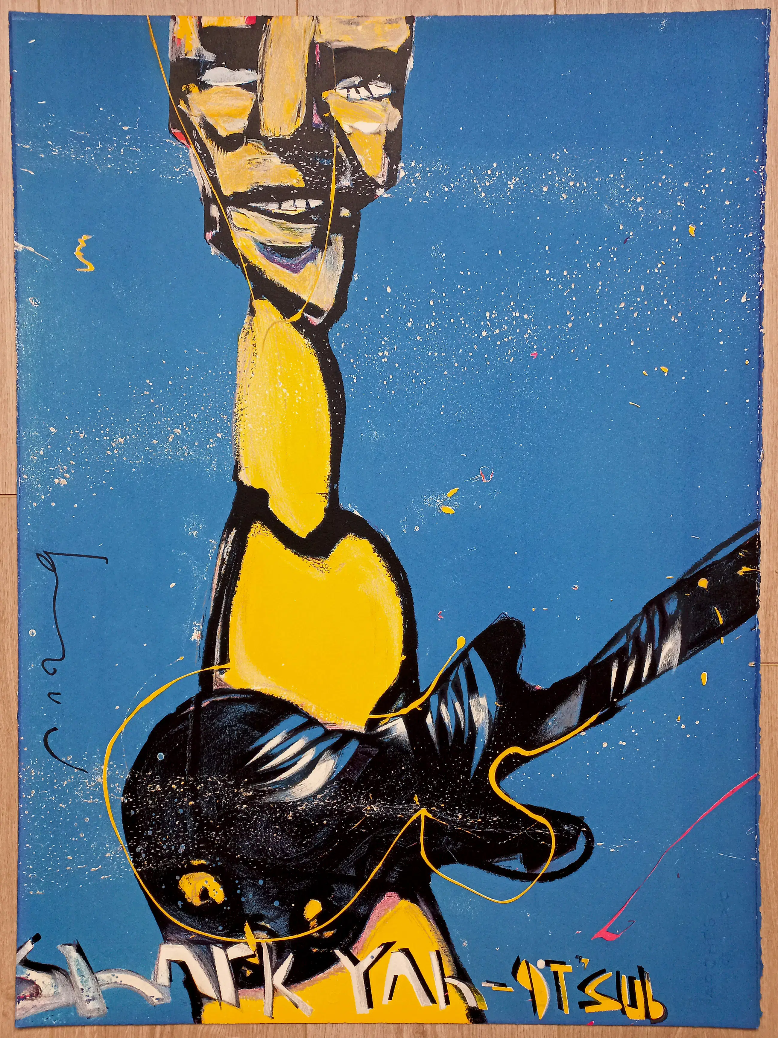 Prachtig werk uit de serie ‘The Band’, in 1990 uitgegeven door de Free Record Shop. Zeefdruk op Arches papier, met zwarte marker gesigneerd en met potlood genummerd (7/250 ?, moeilijk te lezen). In zeer goede conditie.