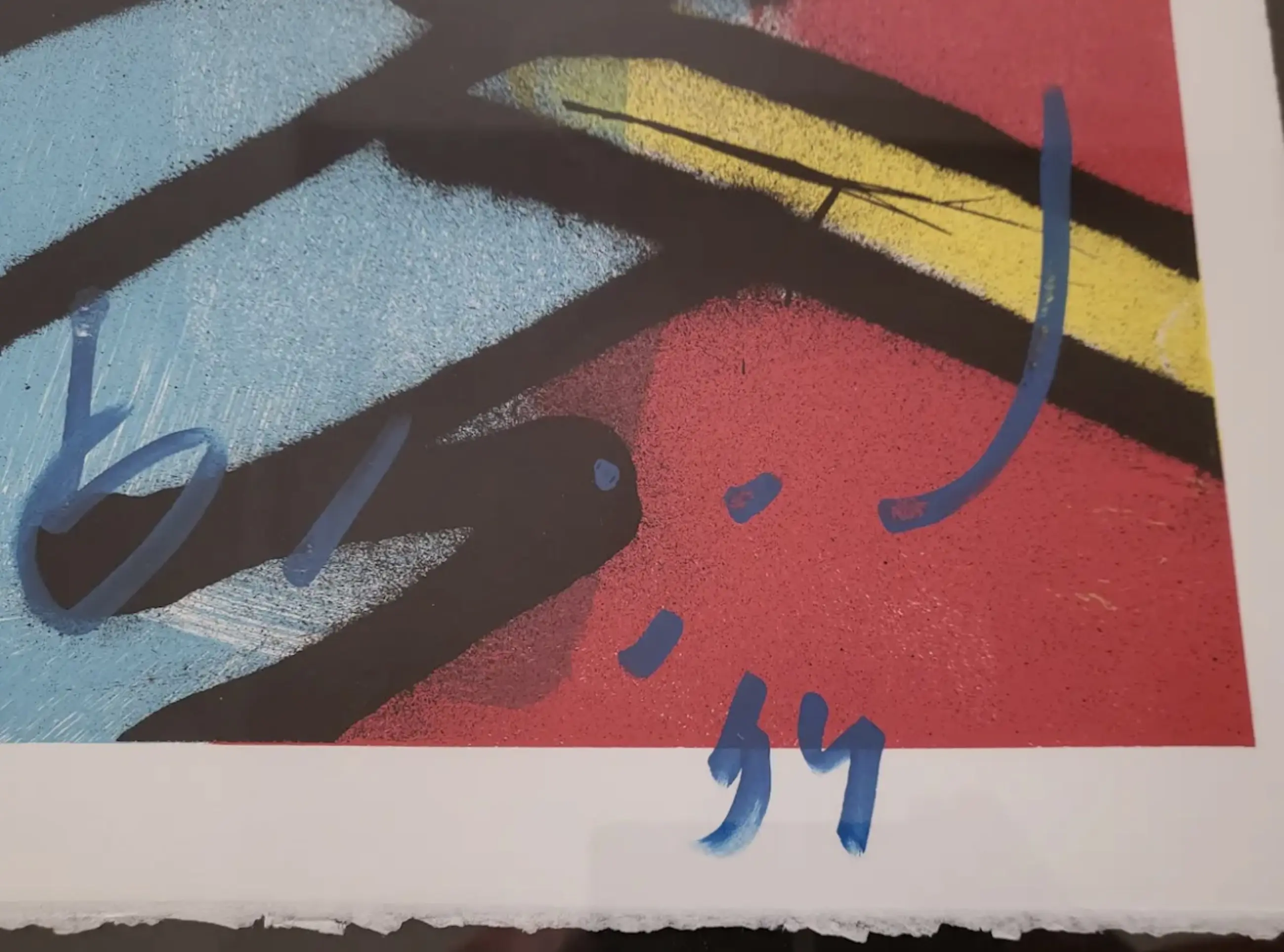 Het werk is met de hand gesigneerd en gedateerd met blauwe marker.