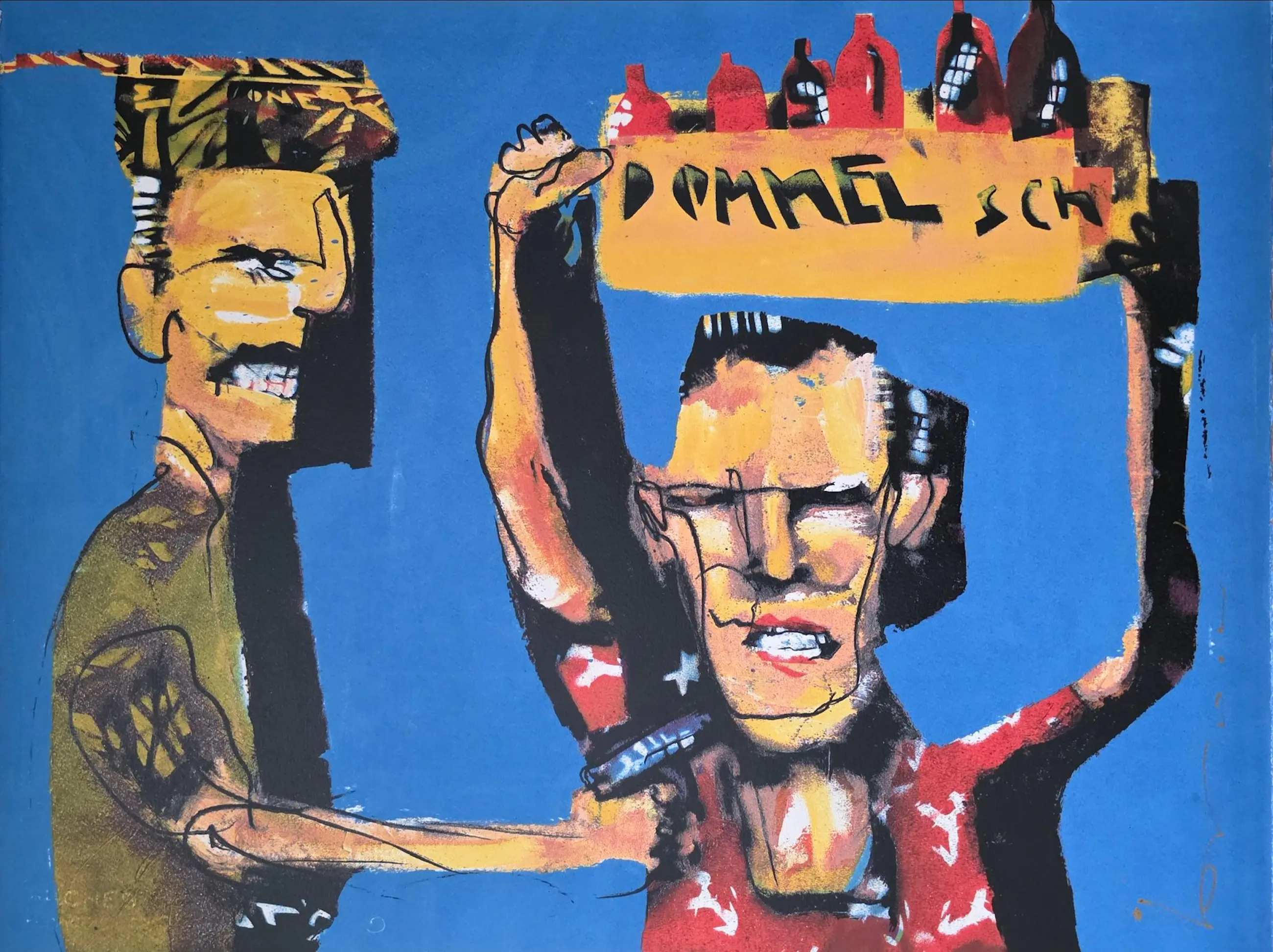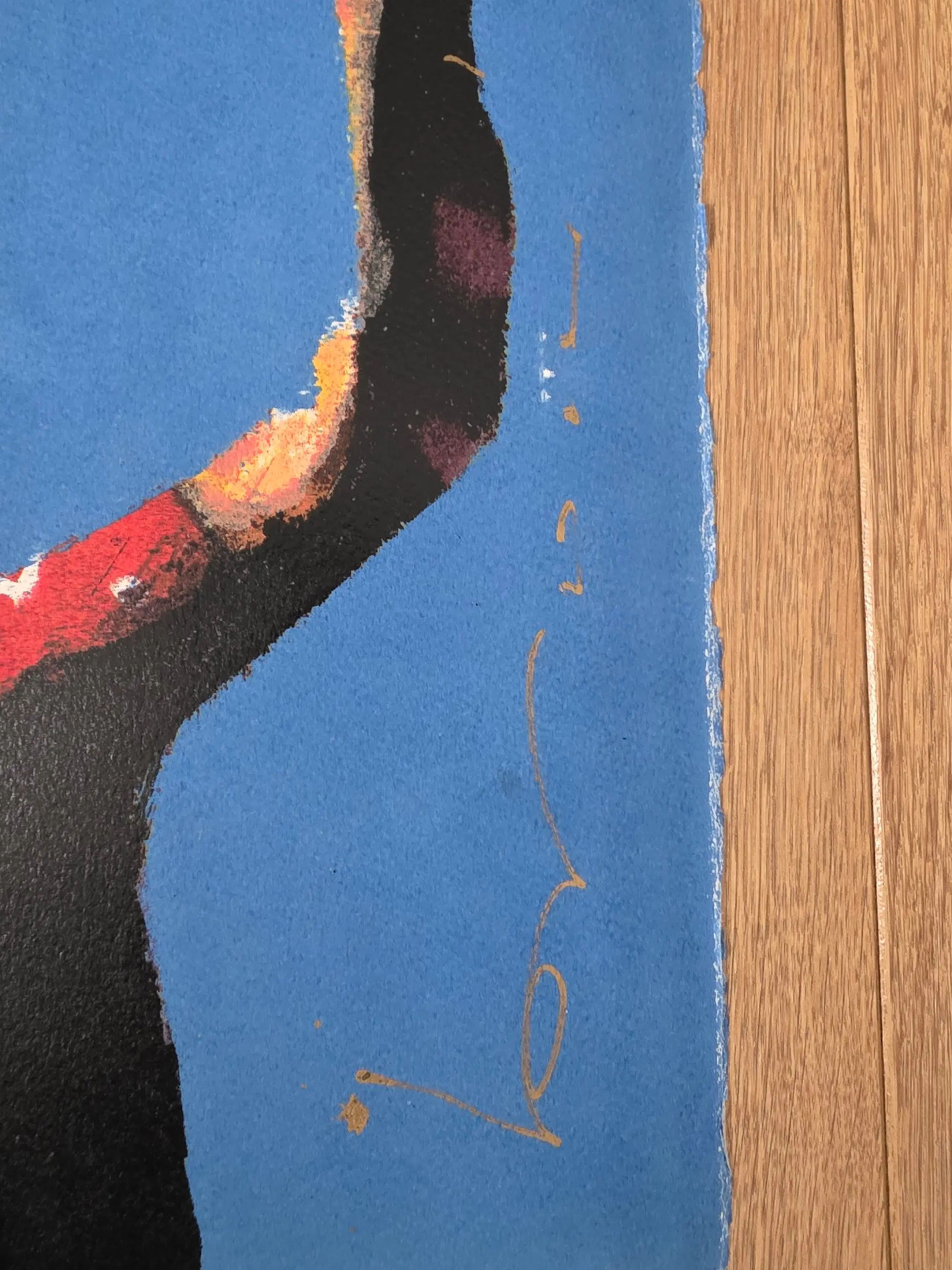 Originele, door Herman Brood met gouden stift gesigneerde zeefdruk.