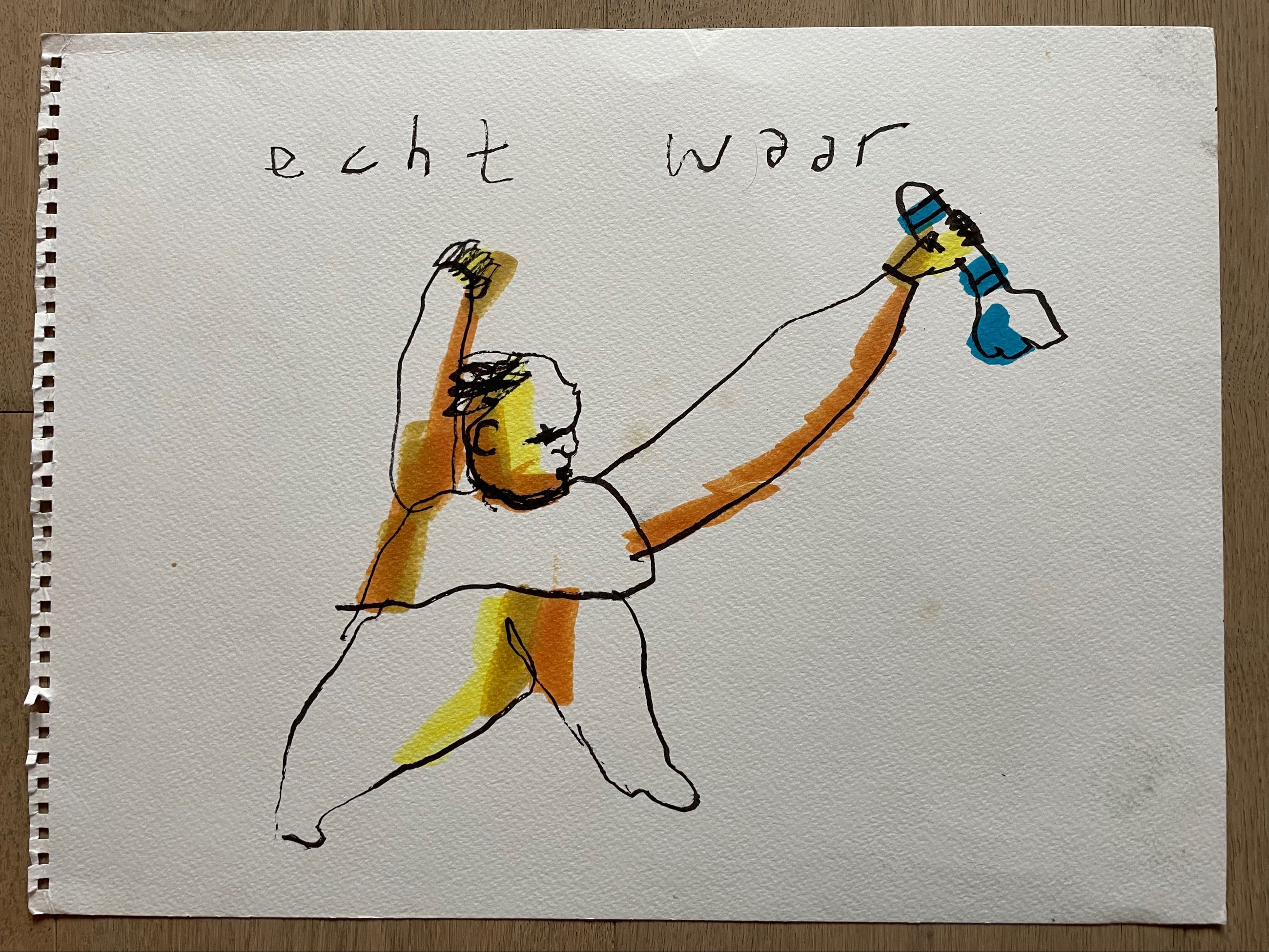 Originele tekening van Herman Brood. Op de achterkant staan schrijfsels van Herman