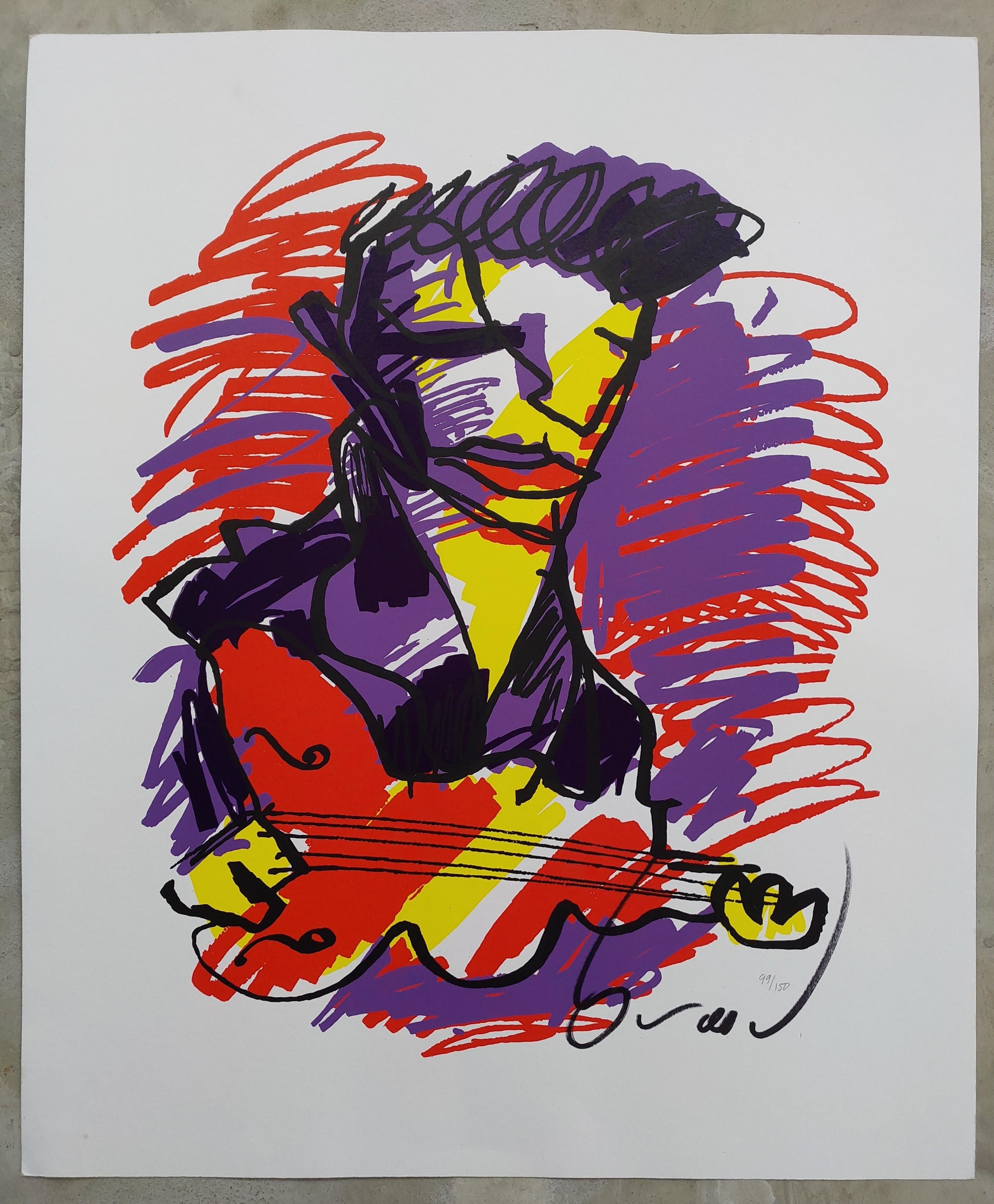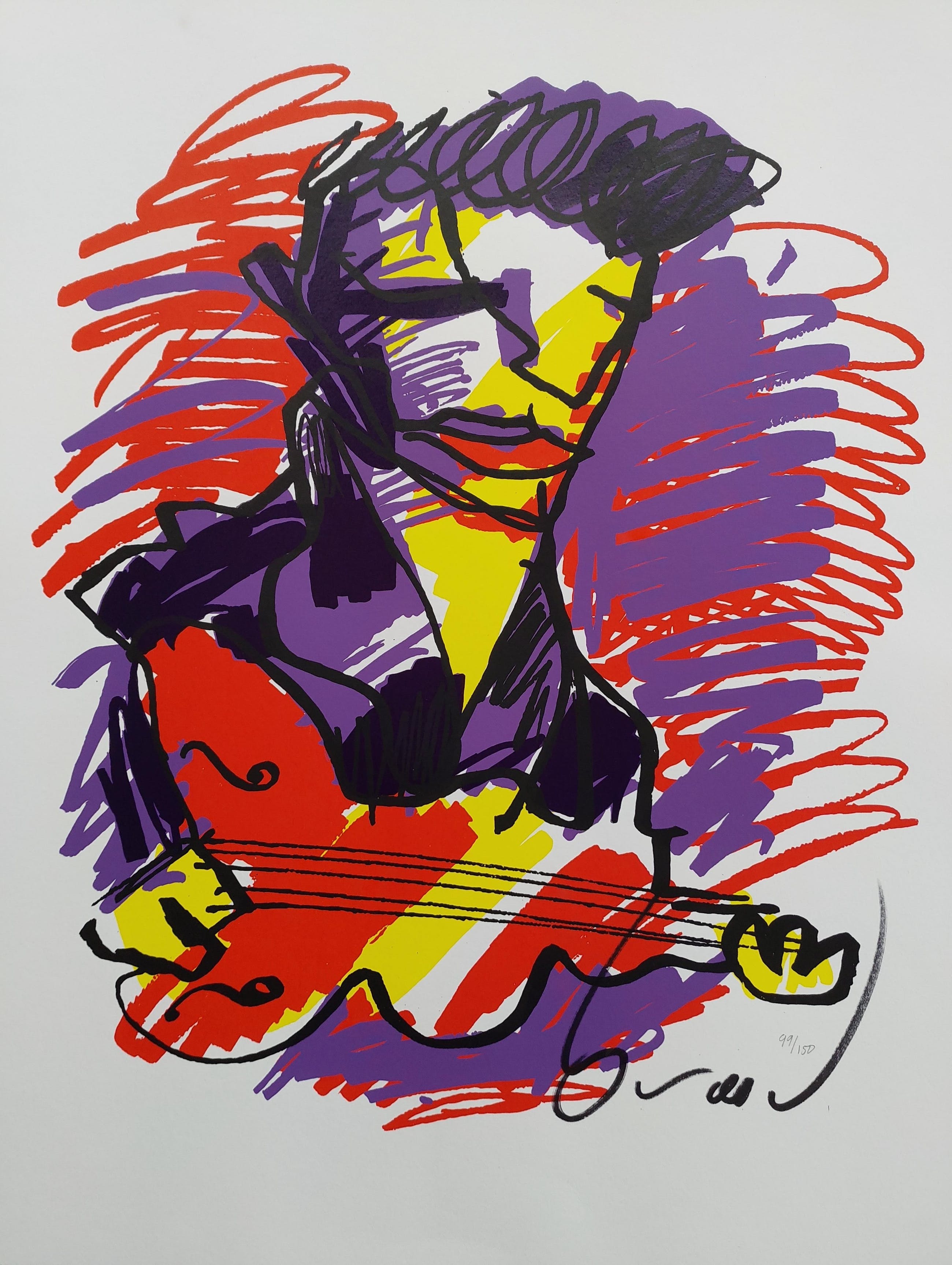 Gesigneerde en genummerde zeefdruk van Neerlandse enige echte rock-ster en multi-talent Herman Brood. Portret van zijn Elvis Presley. Wordt in koker verzonden.