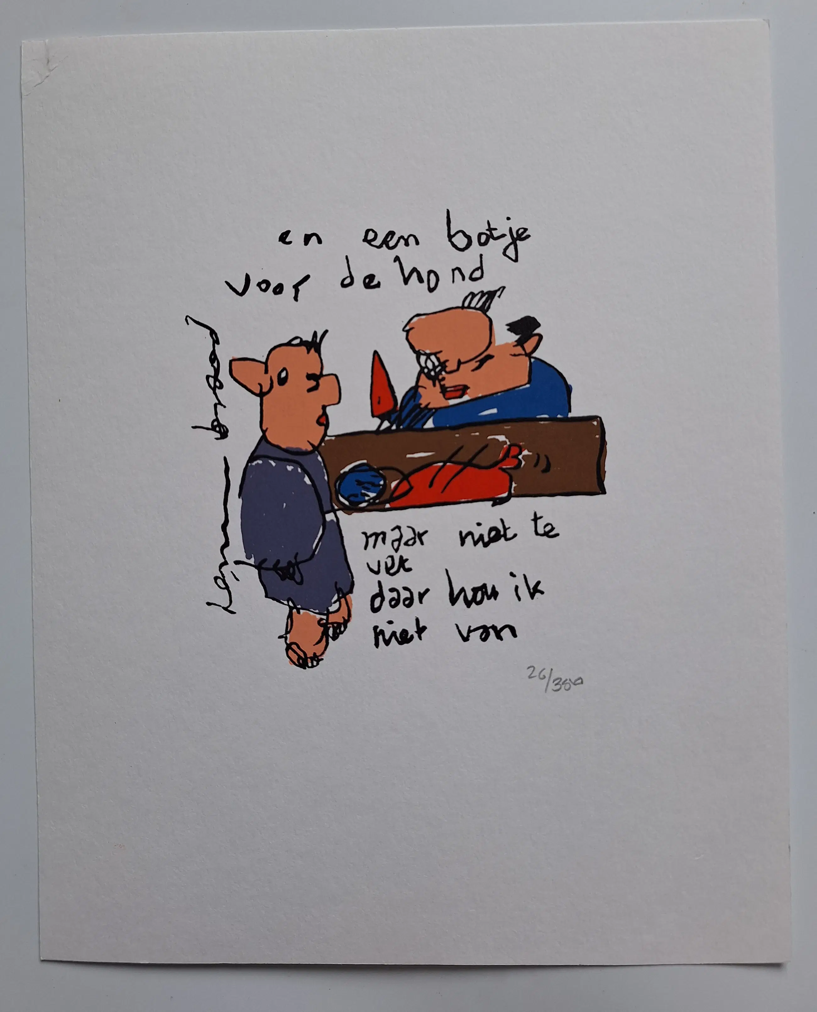 Leuke zeefdruk van kunstenaar Herman Brood. Titel van het kunstwerk; ' En een botje voor de hond' Nummer 26 van de 350 Kleine beschadiging van het papier rechts boven zie foto