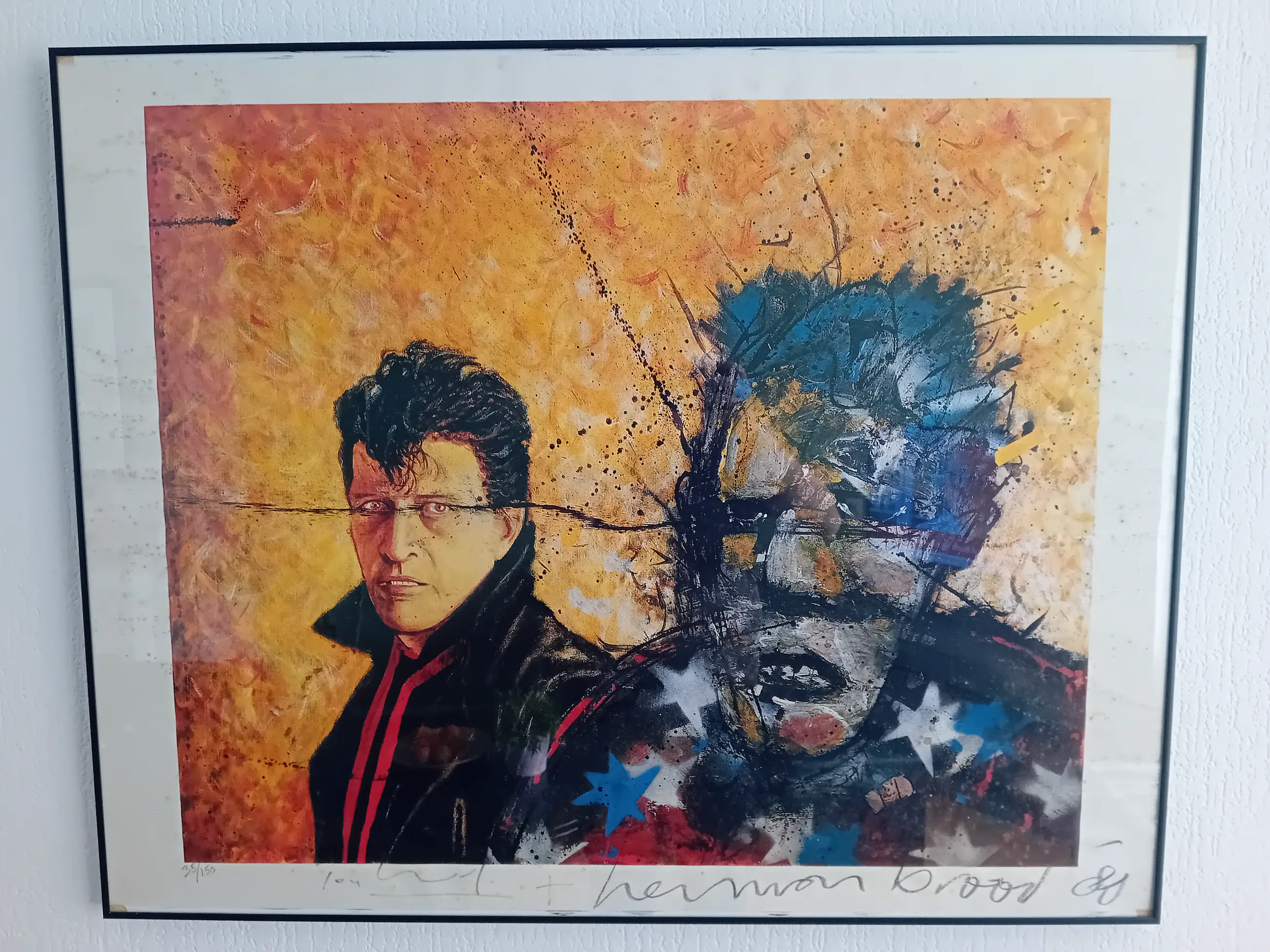 Dit is een uniek object omdat er maar een paar van zijn gemaakt en het komt uit 1980 en het is ingelijst. Dit is ook de mooiste lithografie van Herman Brood die er bestaat, alle andere schilderijen van Brood zijn niet zo mooi maar deze is wel mooi want hier kunt u duidelijk zijn gezicht zien, zodat iedereen ziet dat het een Brood is.