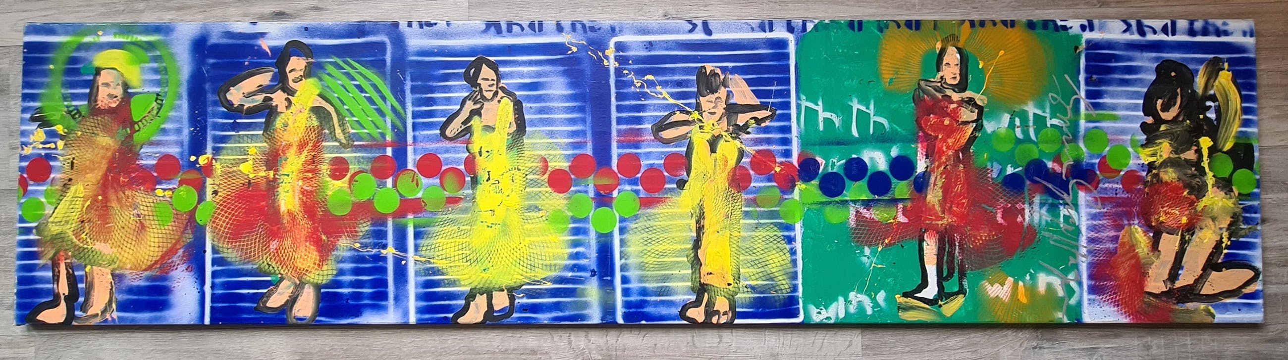 Groot origineel schilderij van Espen Hagen met de titel 6 ladies