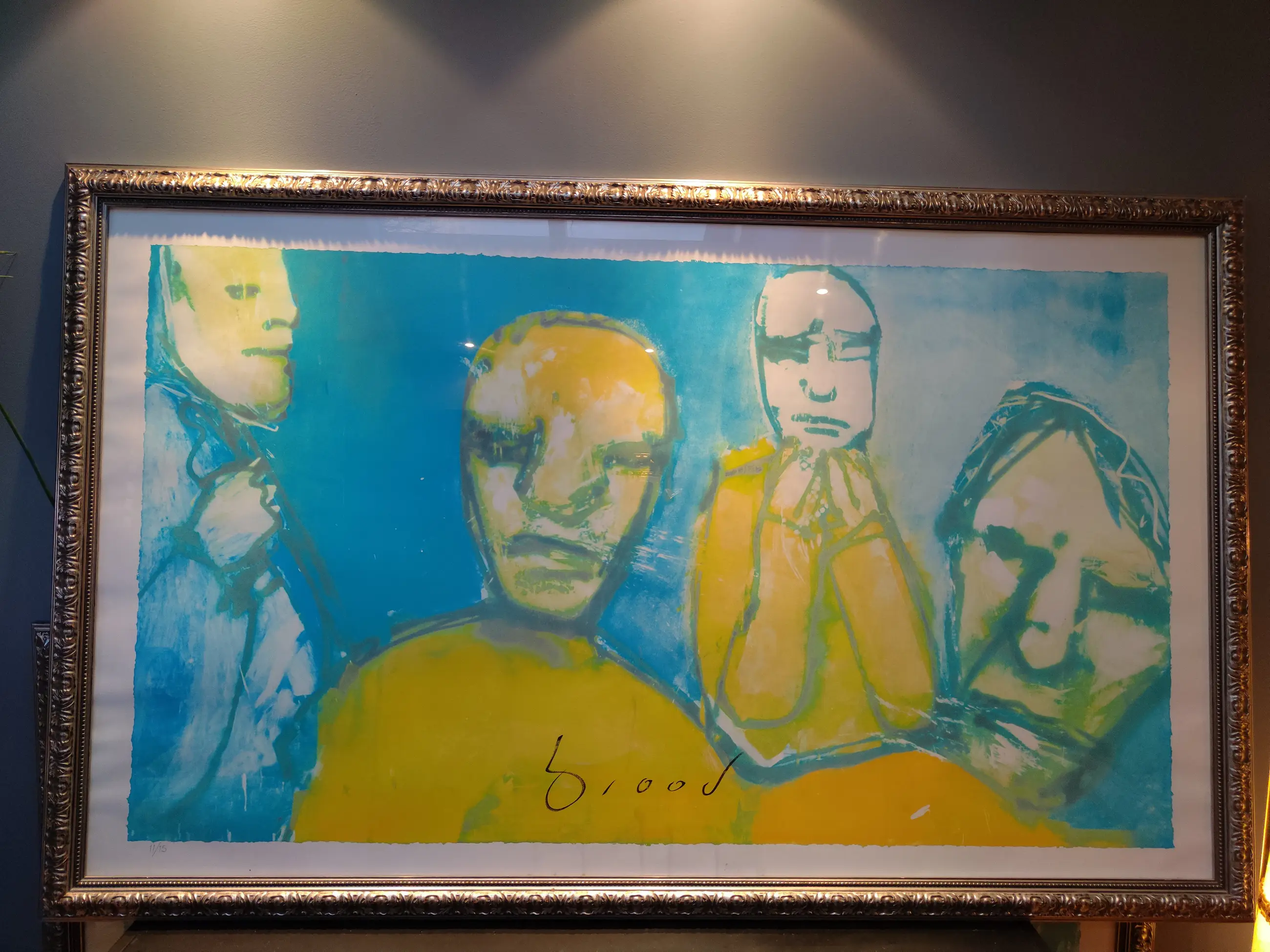 Professioneel ingelijst in een zware lijst met afmetingen van maarliefst 195 x 120 cm.