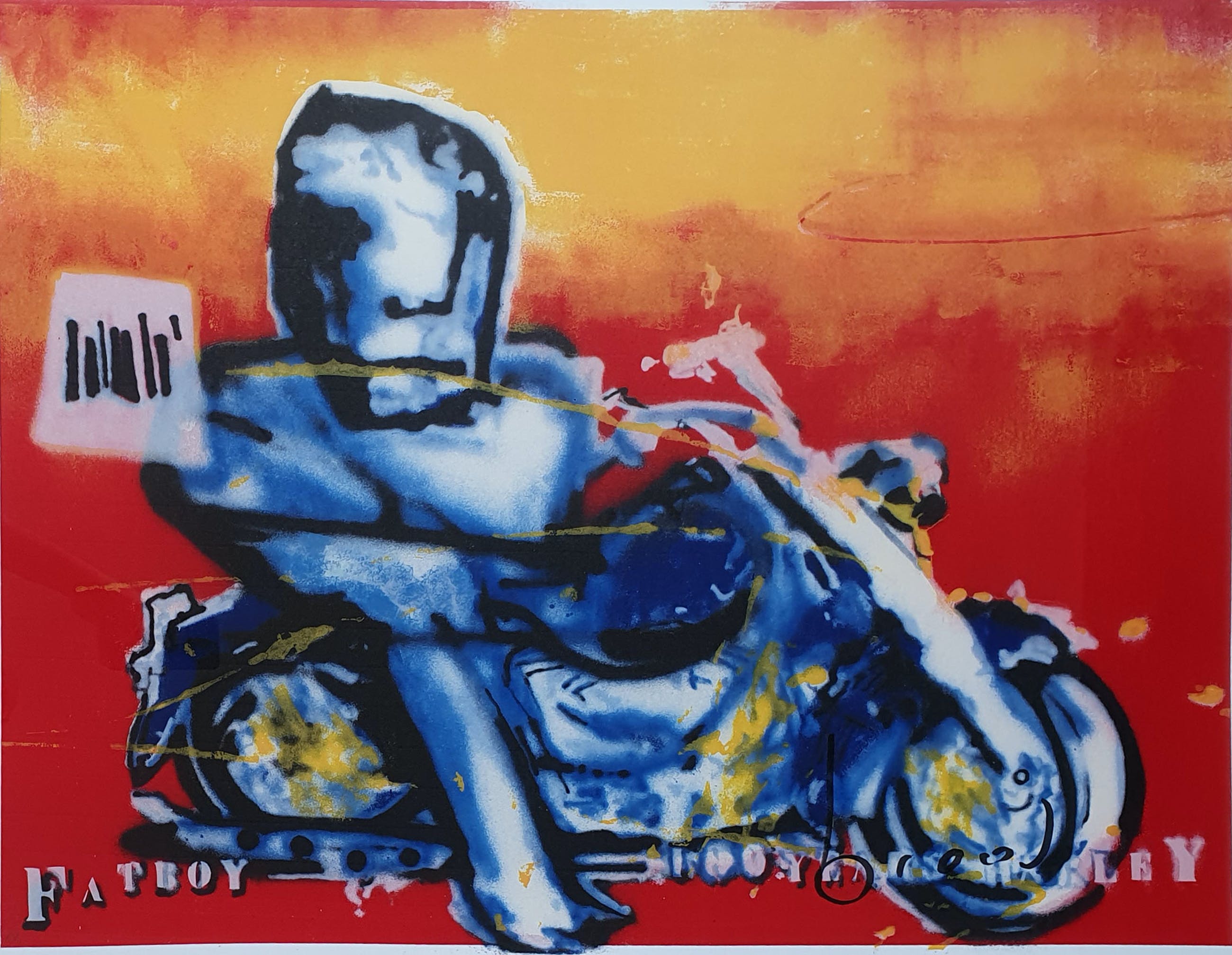 Zeefdruk van Herman Brood met de titel: 'Fat boy'. Het werk is rechtsonder met de hand gesigneerd door de kunstenaar.
