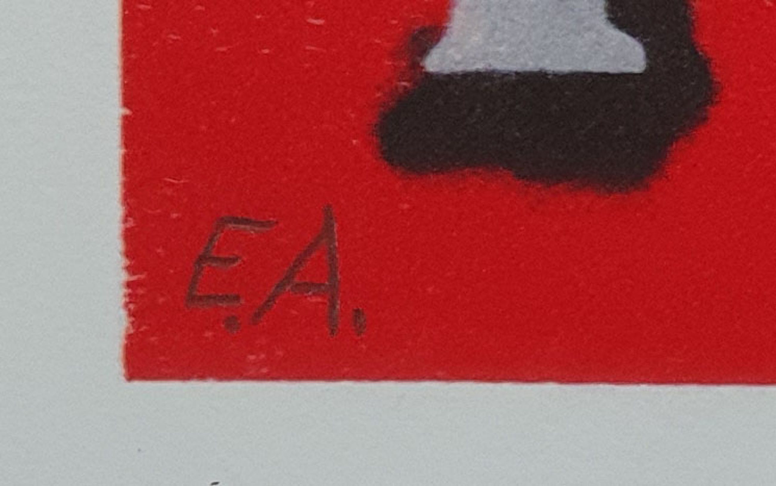 De zeefdruk is professioneel ingelijst in een nieuwe zwart/ zilverkleurige lijst. Het werk wordt geleverd met een echtheidscertificaat.