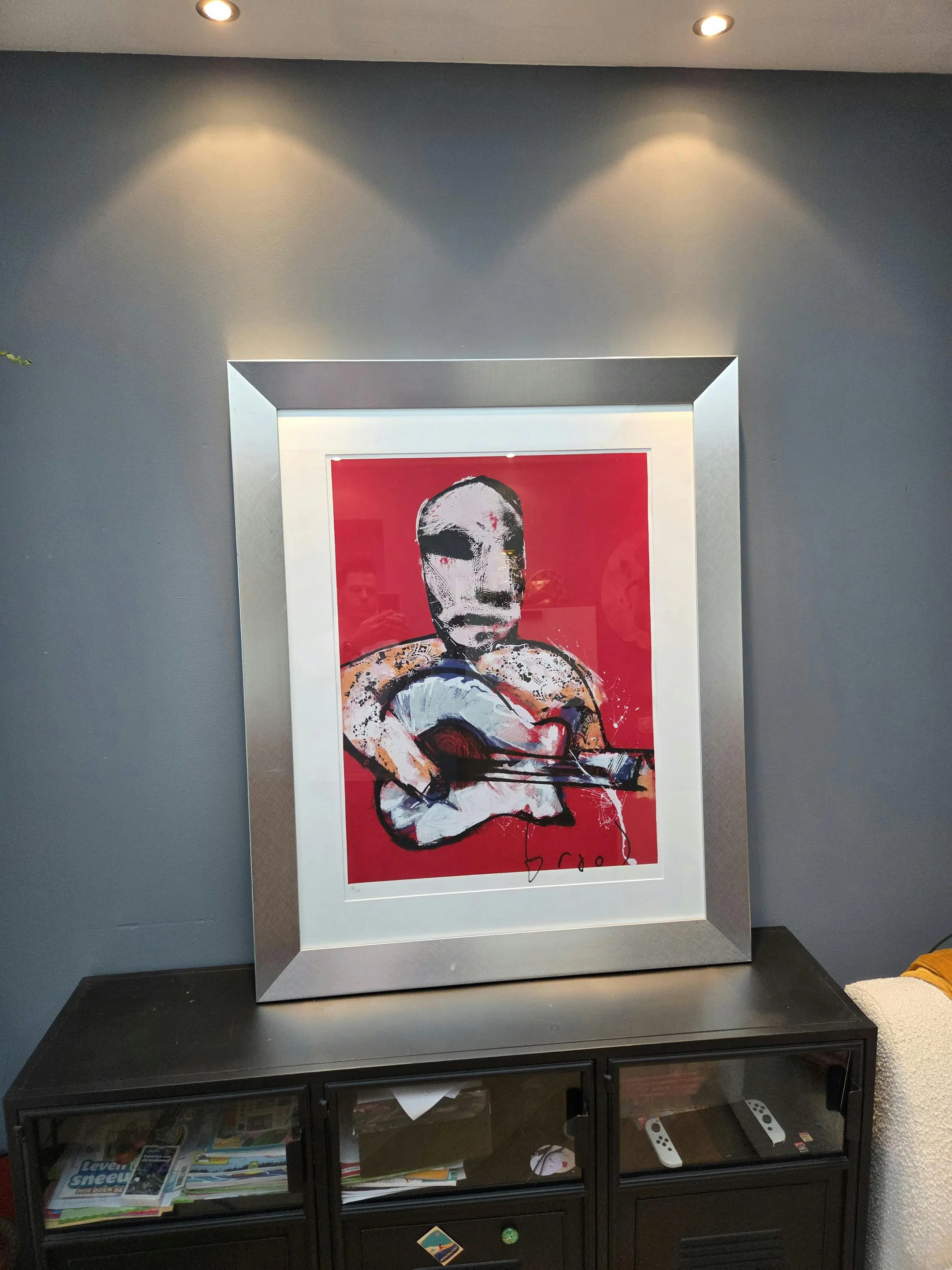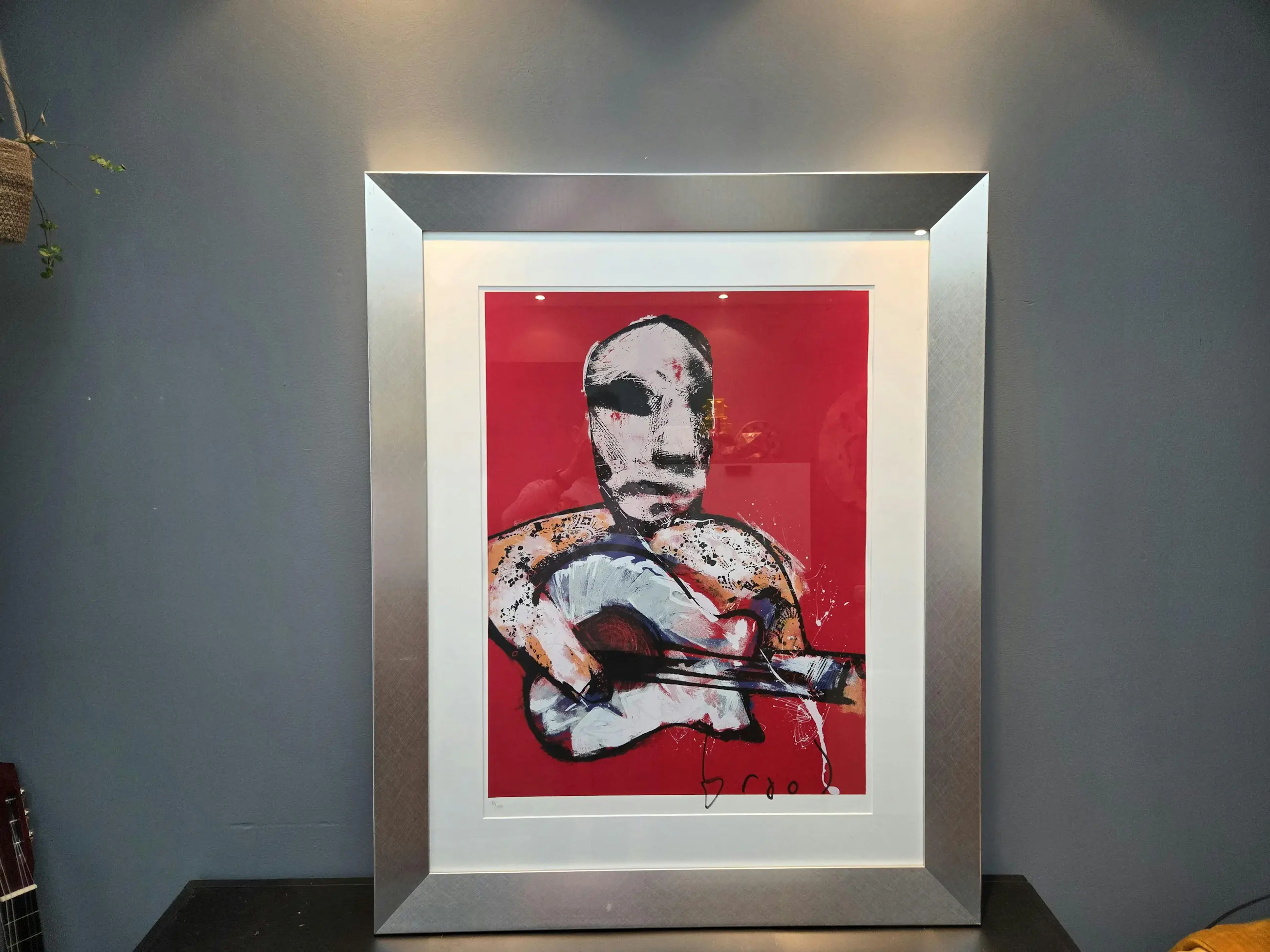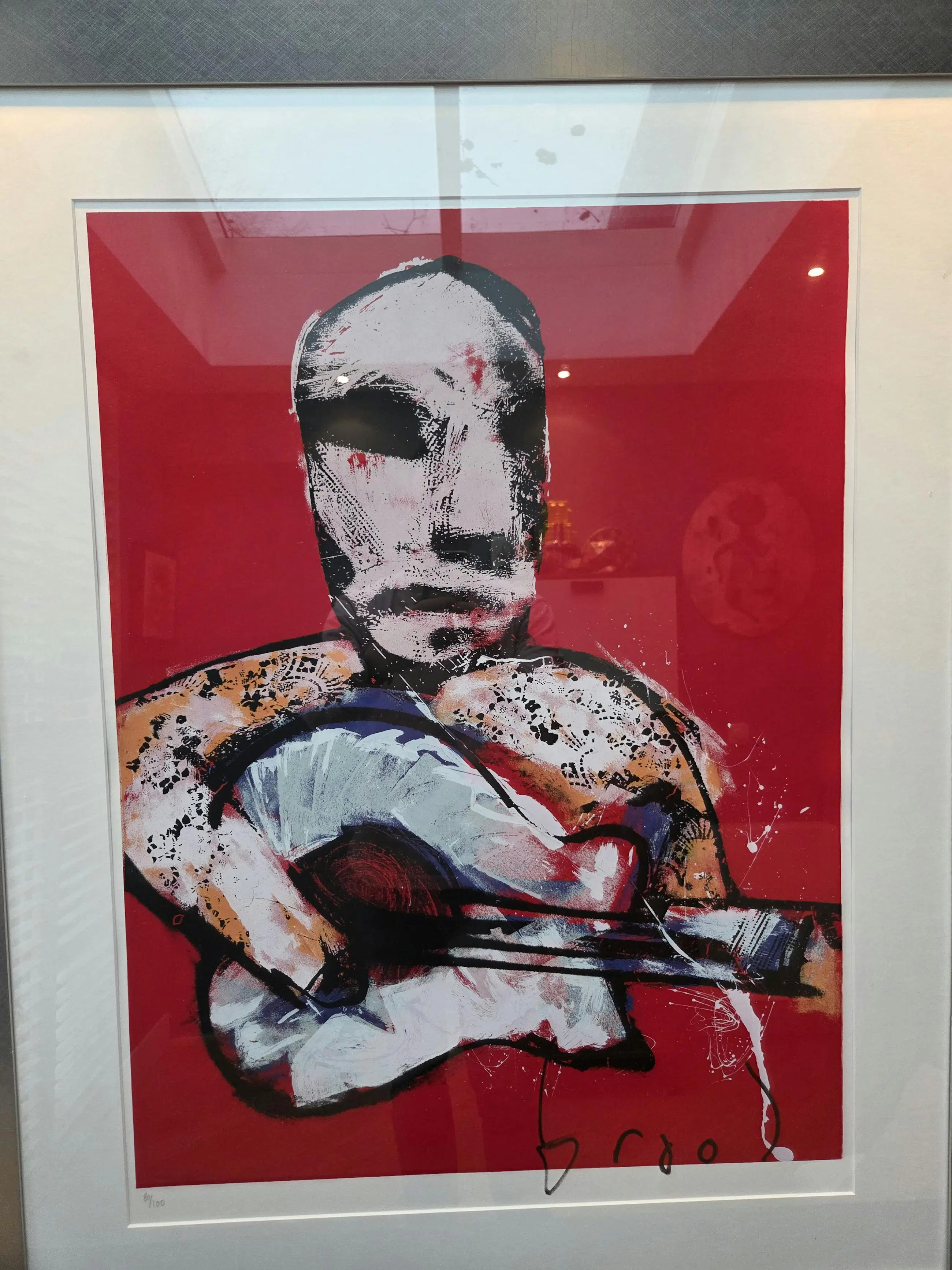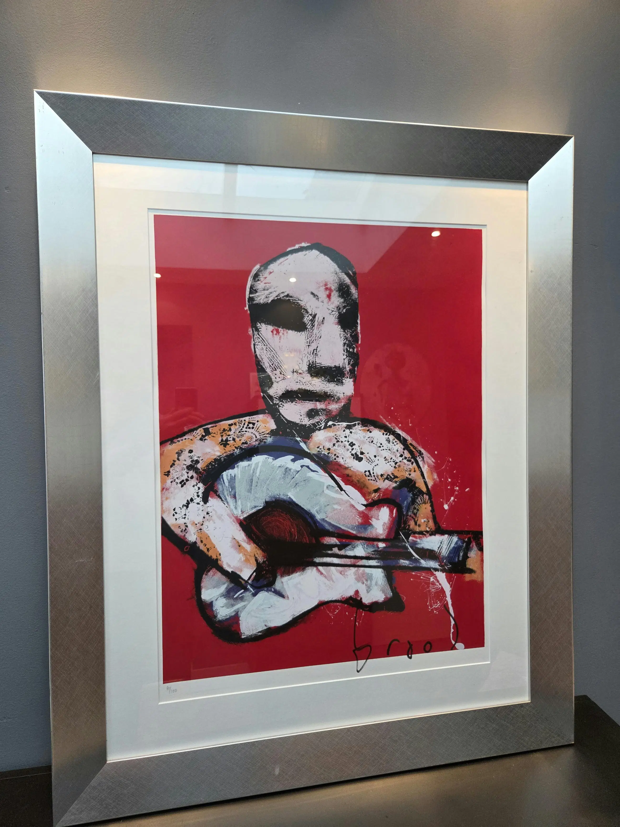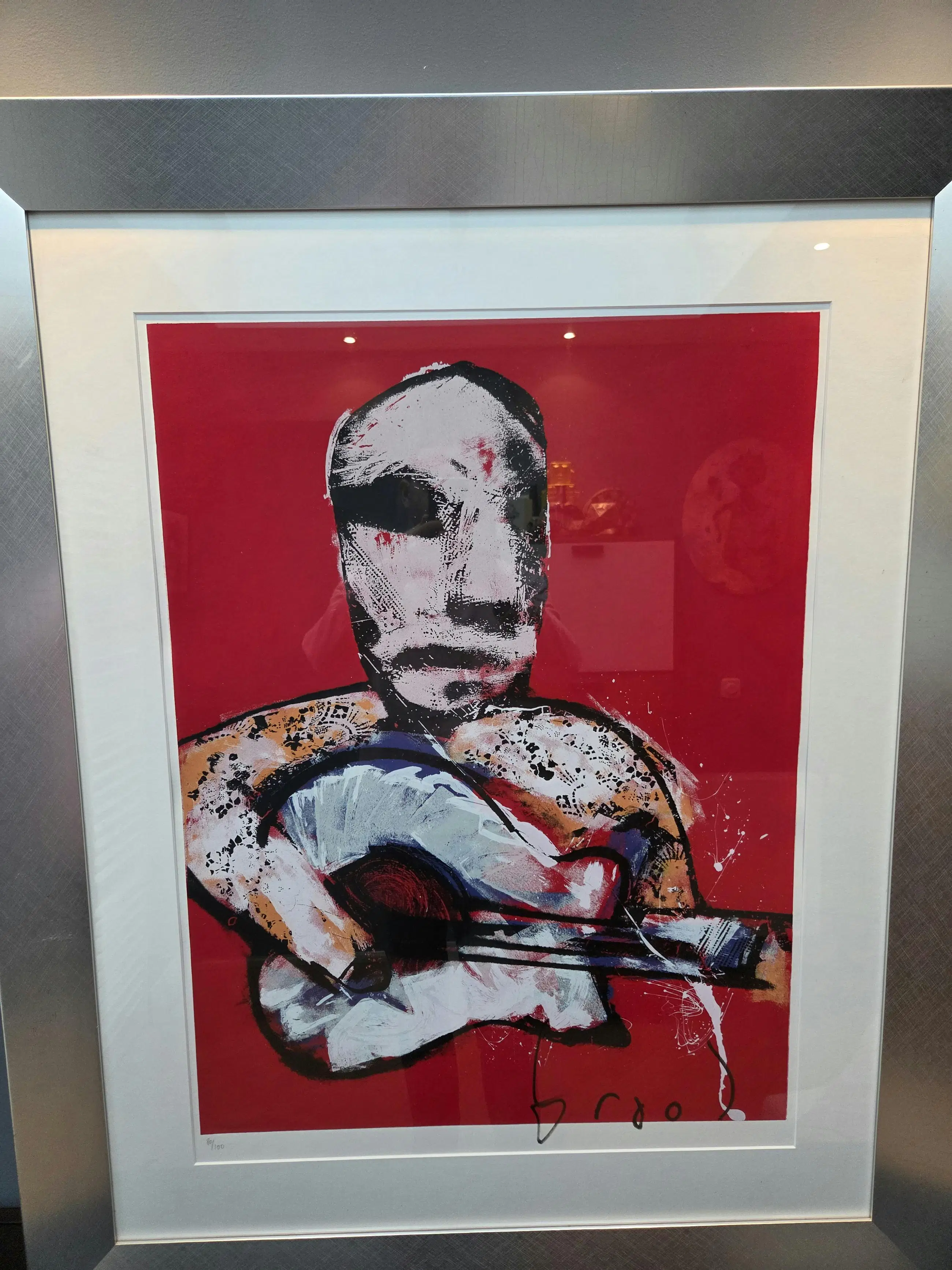Handgesigneerd door de kunstenaar zelf, dit betreft nummer 80/100. En er is een digitale foto waarop Brood te zien is terwijl hij deze zeefdrukken aan het signeren is.
