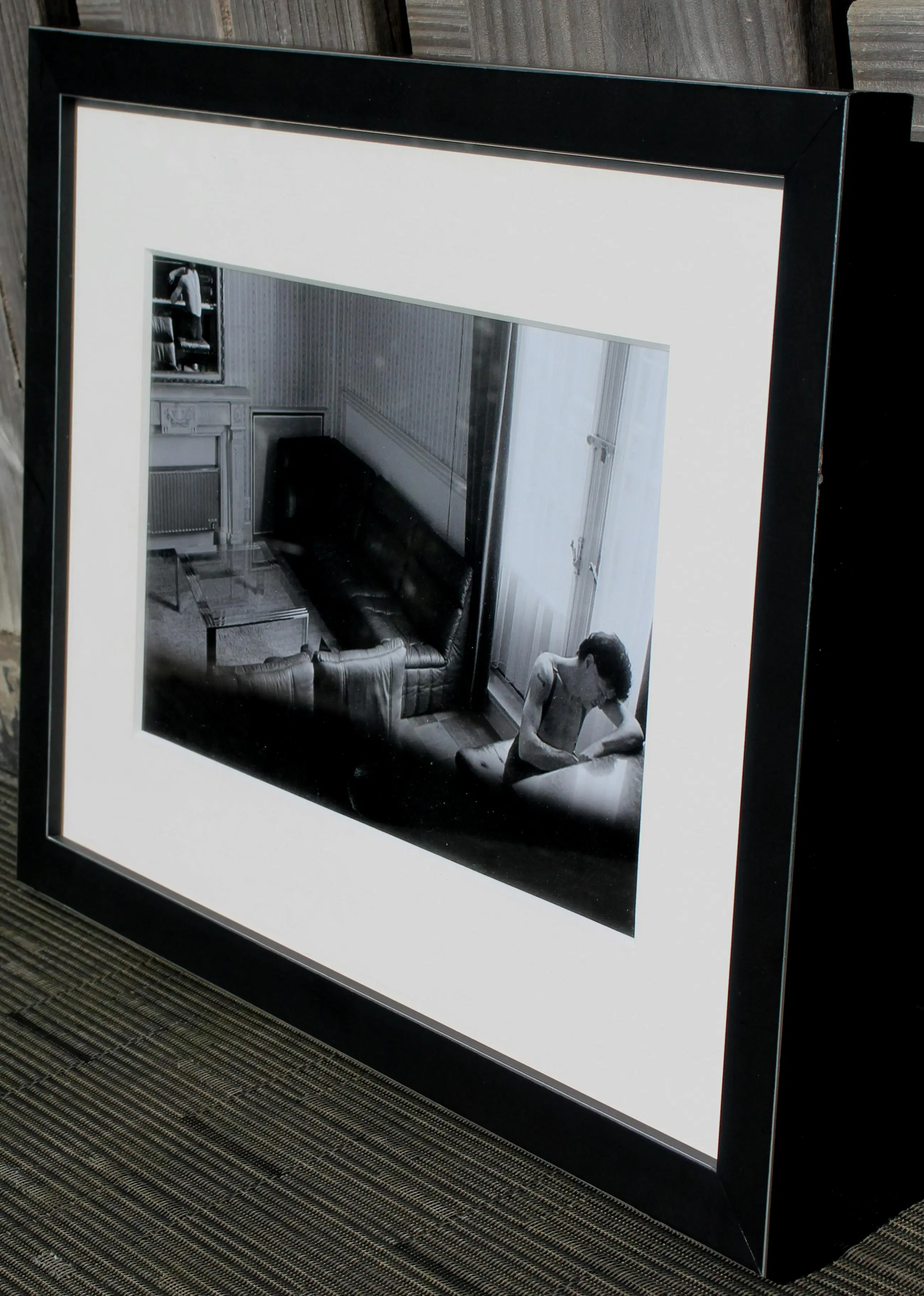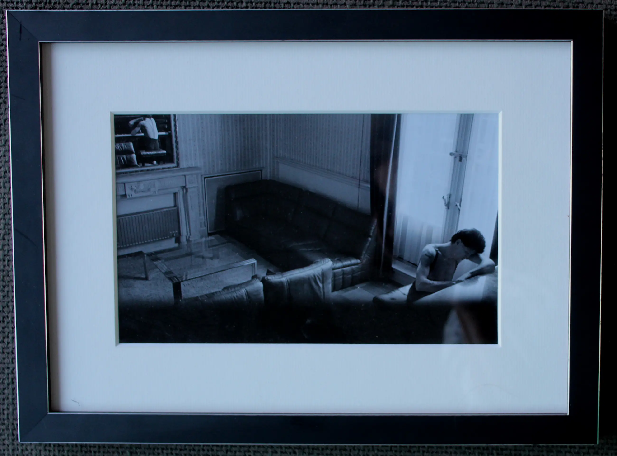 Ingelijste foto van Herman Brood. Afmetingen incl lijst: H33 x b42cm. Afmetingen voorstelling: H20 x b29cm. Het werk is niet gesigneerd door de kunstenaar.