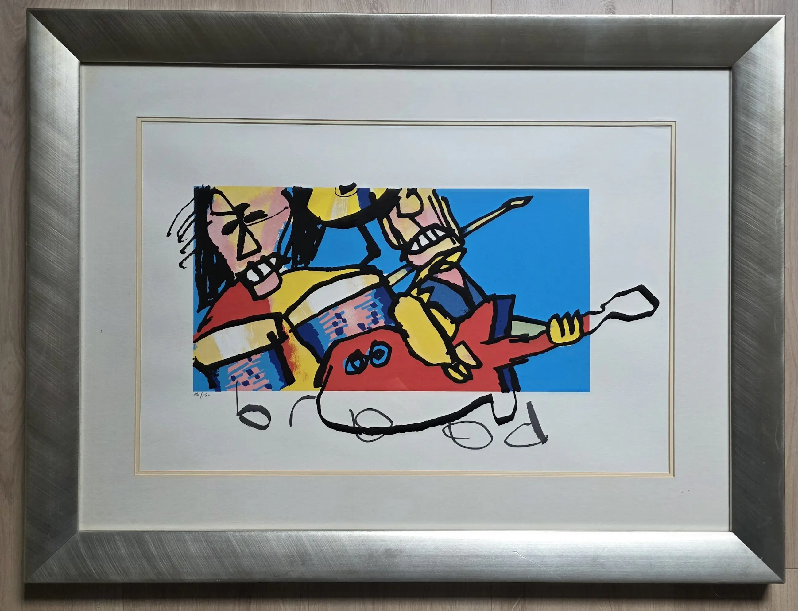 Titel: Free Pop Signatuur: handgesigneerd met marker Techniek: zeefdruk op papier Afmeting beeld: 38 x 67 cm. Afmeting lijst: 65 x 97 cm. Reden verkoop: inkrimping privécollectie
