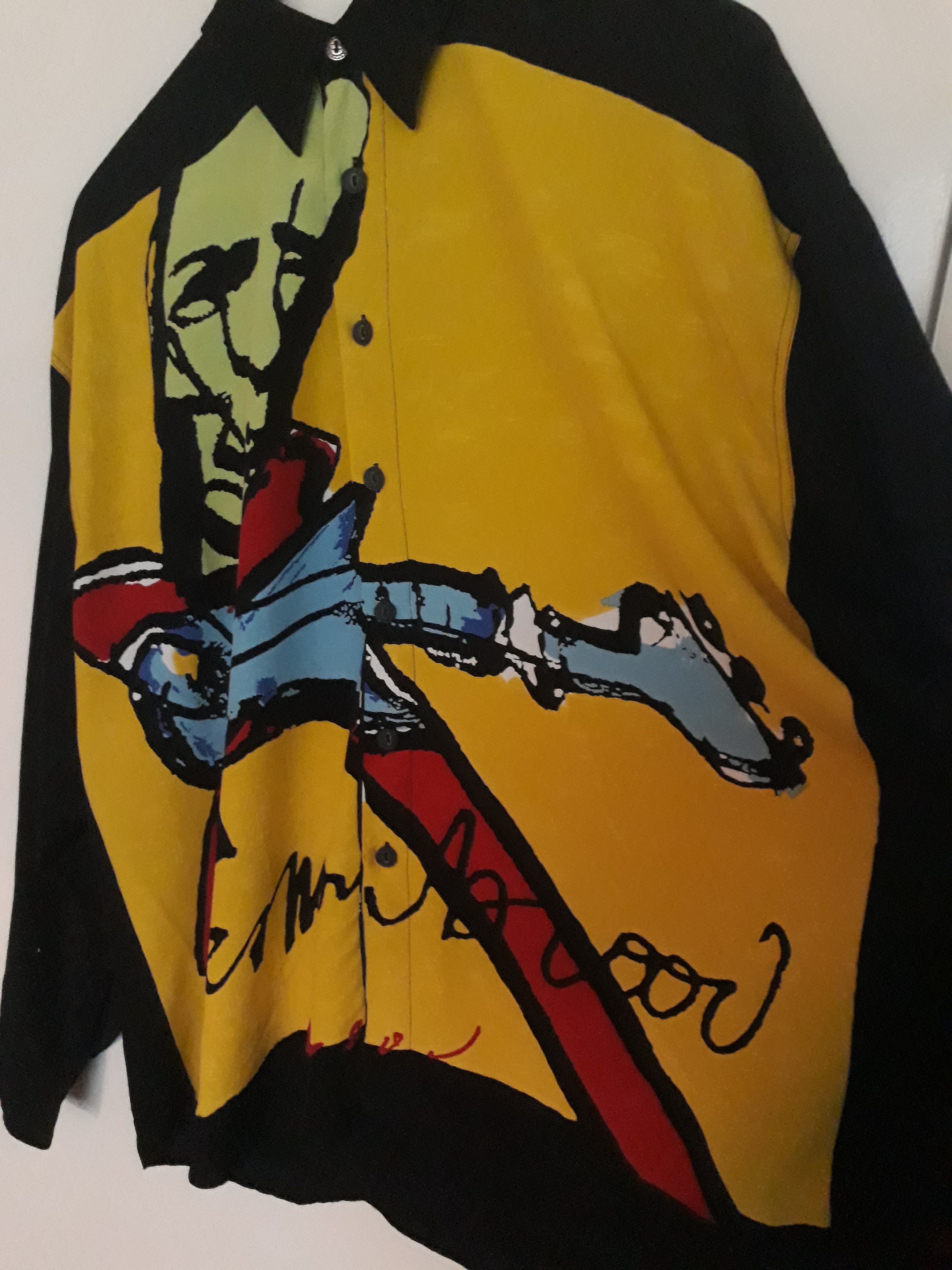 Zeer mooi in nieuwstaat verkerende blouse van Herman Brood uit de jaren 90. Met de afbeelding the guitar man