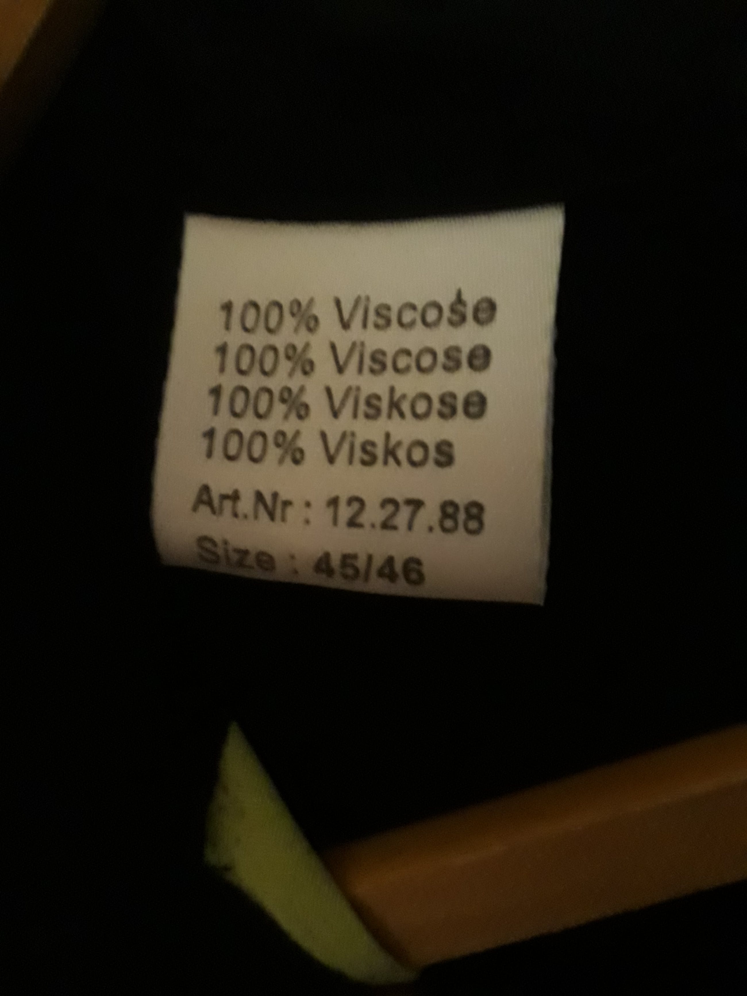 Slechts een keer gedragen,geen enkele zichbare slijtage,niet kapot. Is gemaakt van 100% viscose. Maat 45/46. Is gewassen en gestreken. Collectors item.