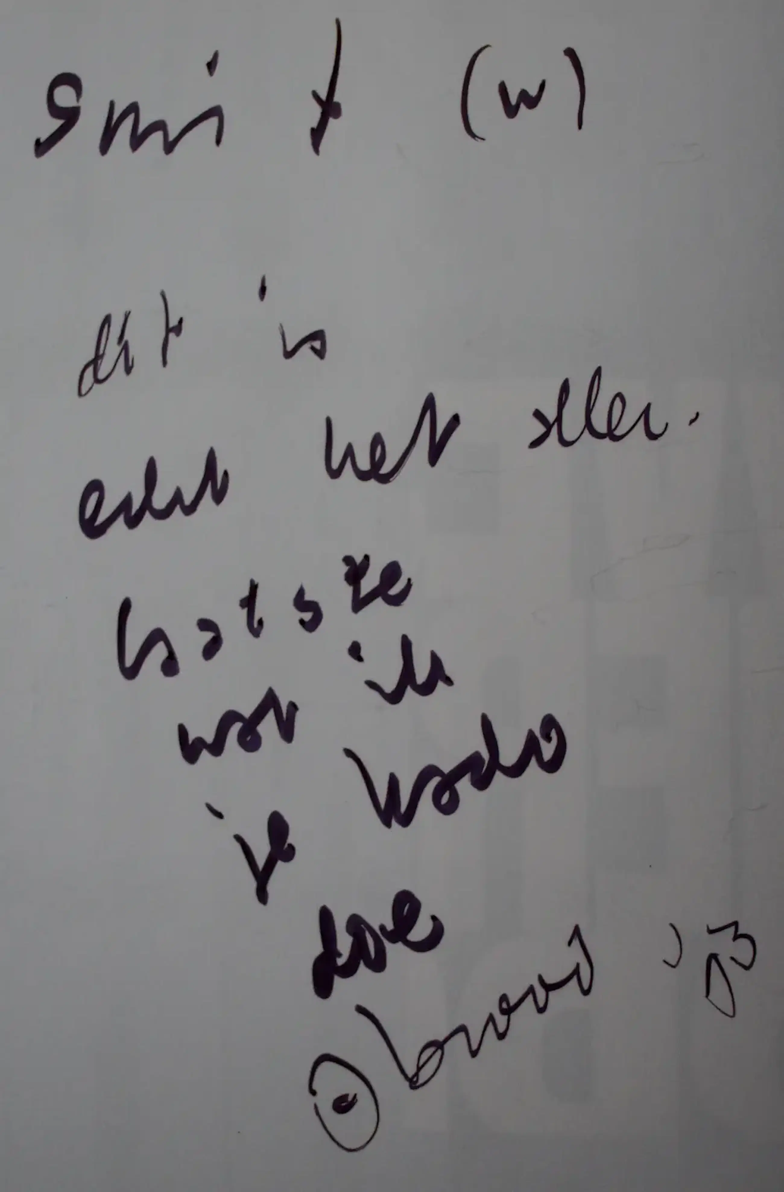 Tekst bij handtekening: Smit (W) dit is echt het allerlaatste wat ik je kado doe, brood, 93.