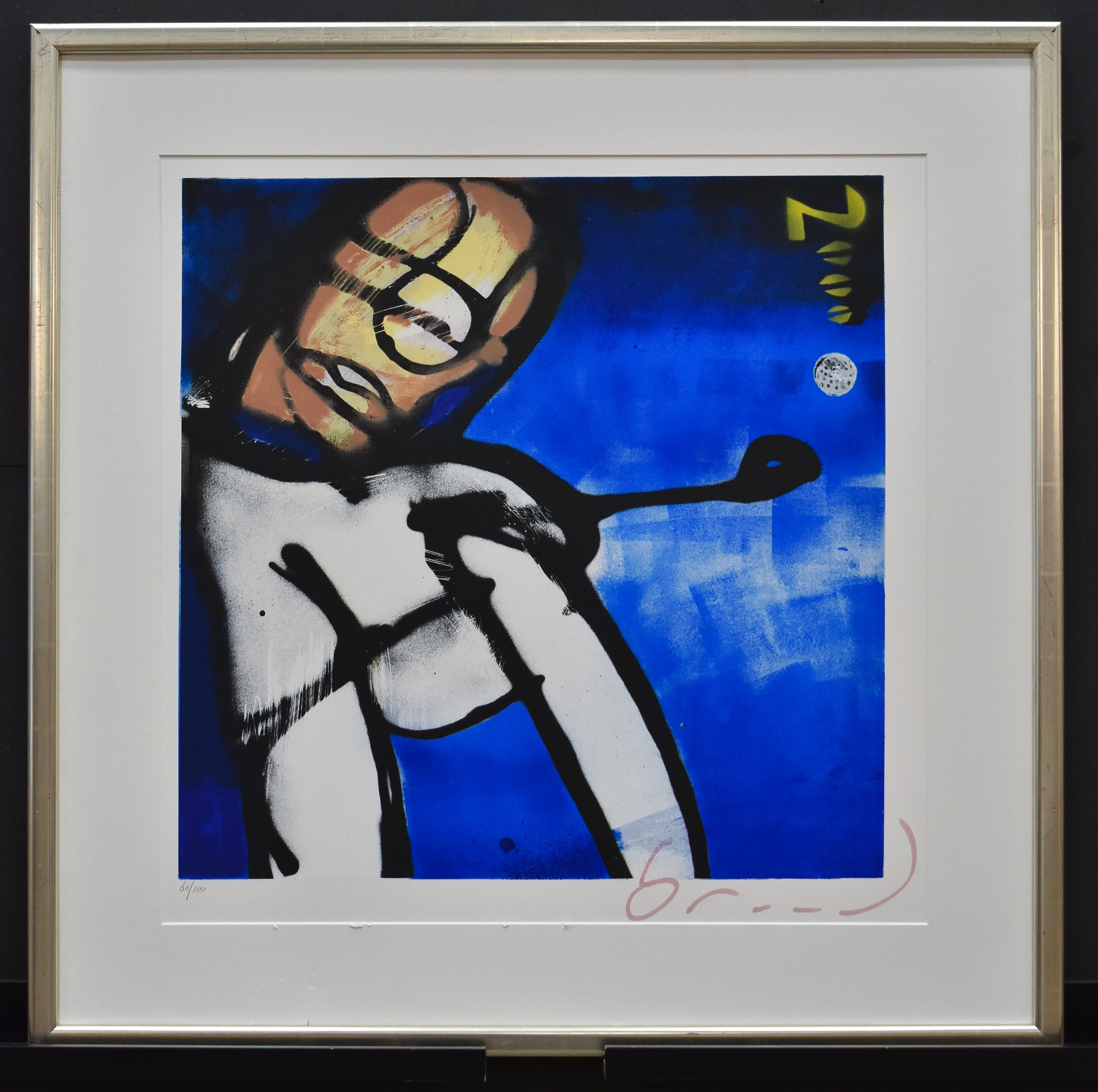 Dit werk door Herman Brood geeft golfer weer. Het werk is ingelijst en verkeert in een goede staat.