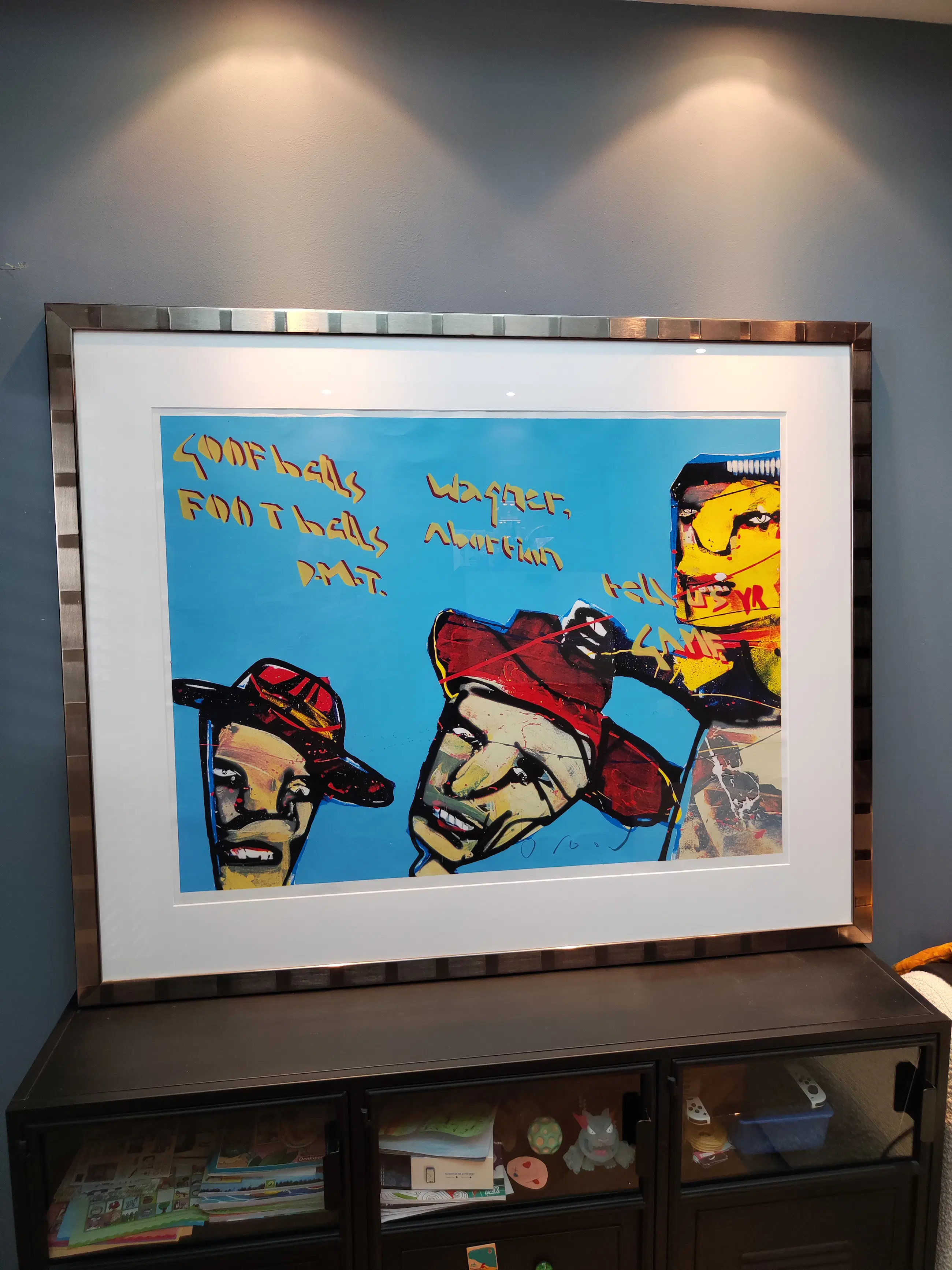 De zeefdruk is in perfecte staat en schitterend ingelijst. Het werk meet maar liefst in totaal 115x143 cm.