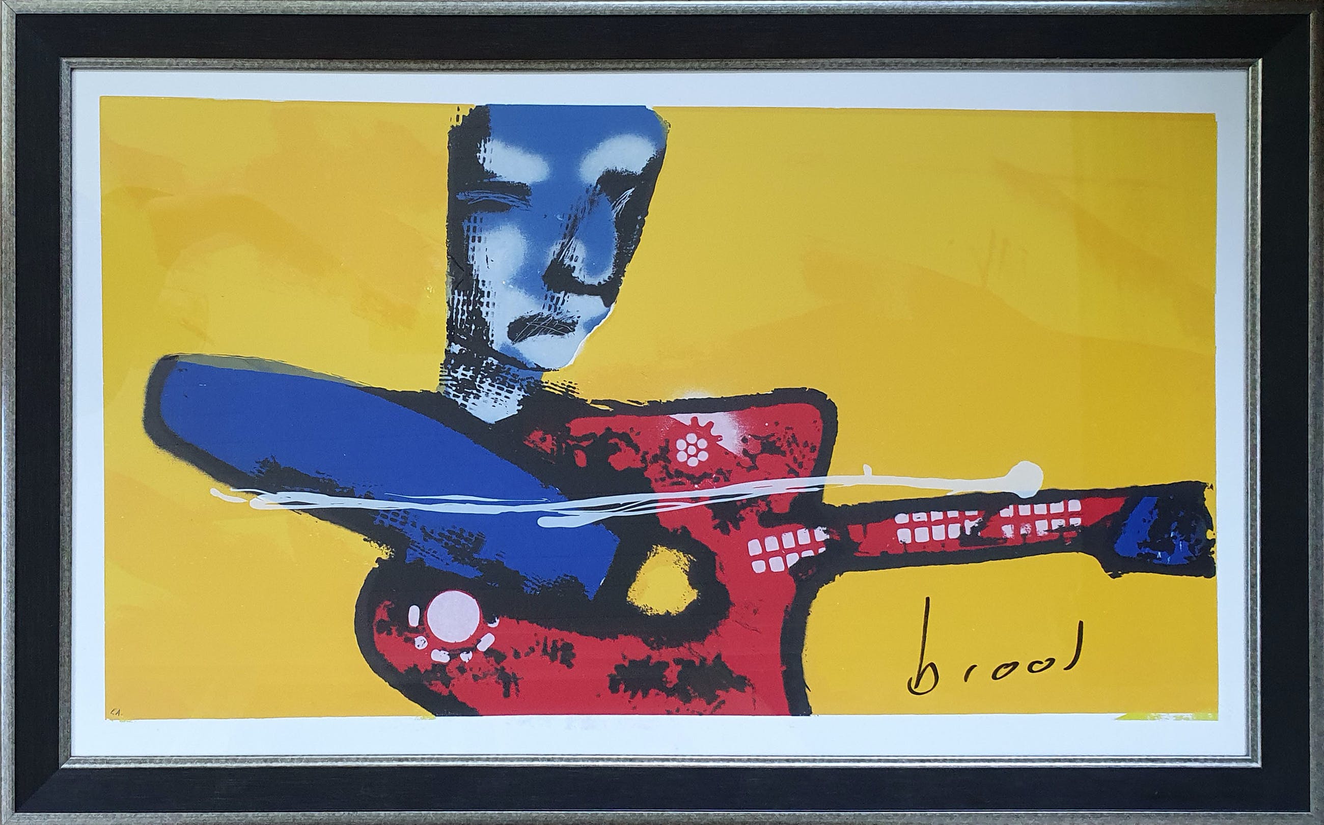 Kunstenaar: Herman Brood Titel: Gitar man Periode: 1945-1999 Techniek: Zeefdruk Oplage: E.a. Gesigneerd: Rechtsonder Afwerking: Ingelijst Afmeting voorstelling (HxB): 62 x 112 cm Afmeting lijst (HxB): 82 x 131 cm Conditie werk: Zeer goed Conditie lijst: Nieuw Referentie: ZK3001009 Verdere info: Met certificaat