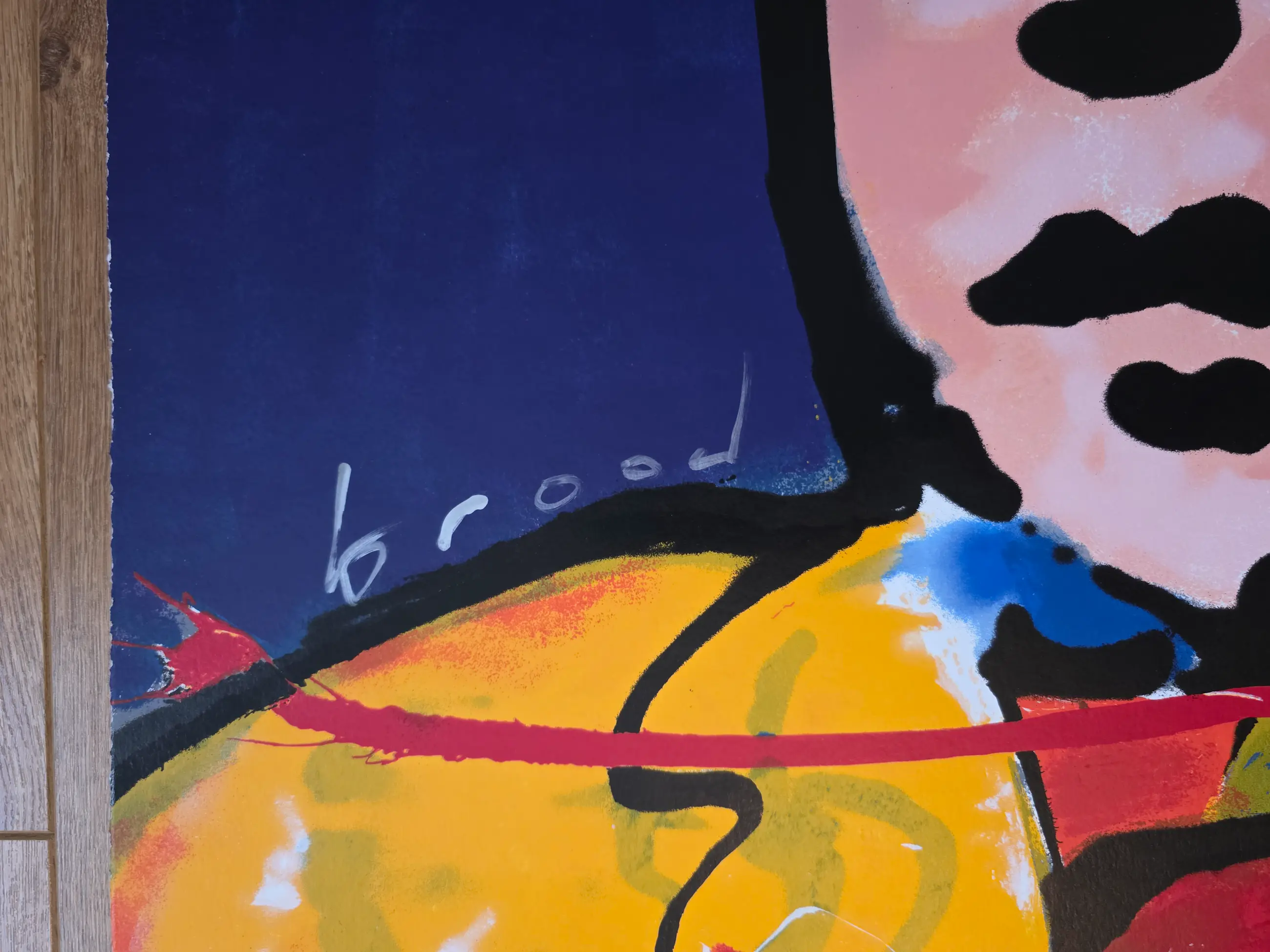 Originele door Herman Brood maar liefst dubbel gesigneerde zeefdruk uit het jaar 1998 genaamd Guitarman. Achterop een sticker van Coach Art.