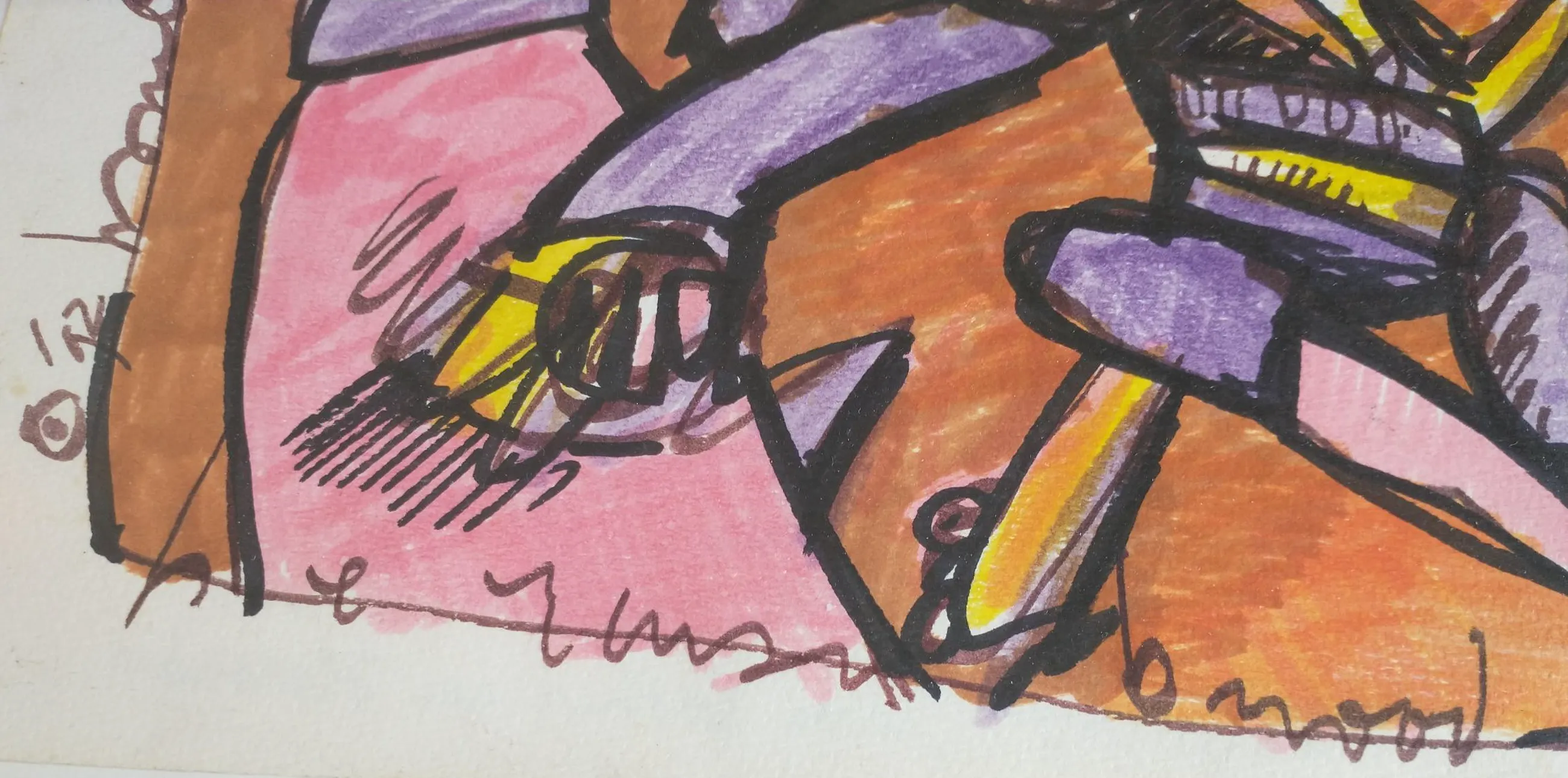 De tekening is in Hamburg gemaakt in 1992 en is voluit gesigneerd.