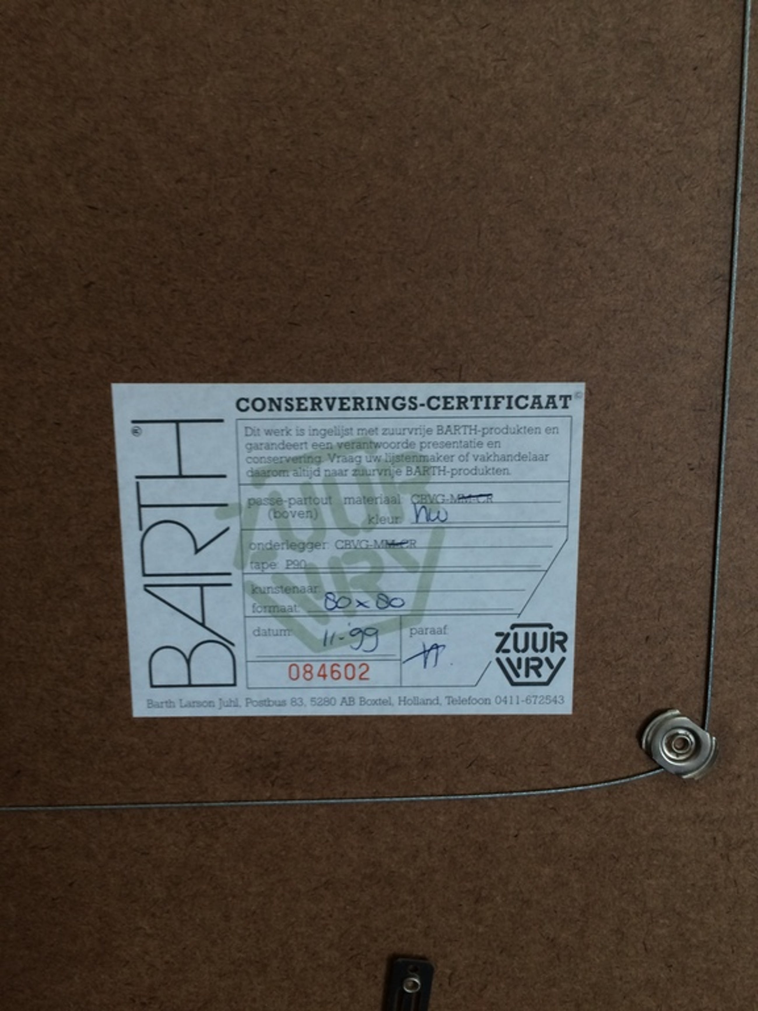 | Afhalen | Het werk is af te halen op locatie. Als koper dient u zelf verpakkingsmateriaal mee te nemen. De locatie is: Oosterhout, Nederland |