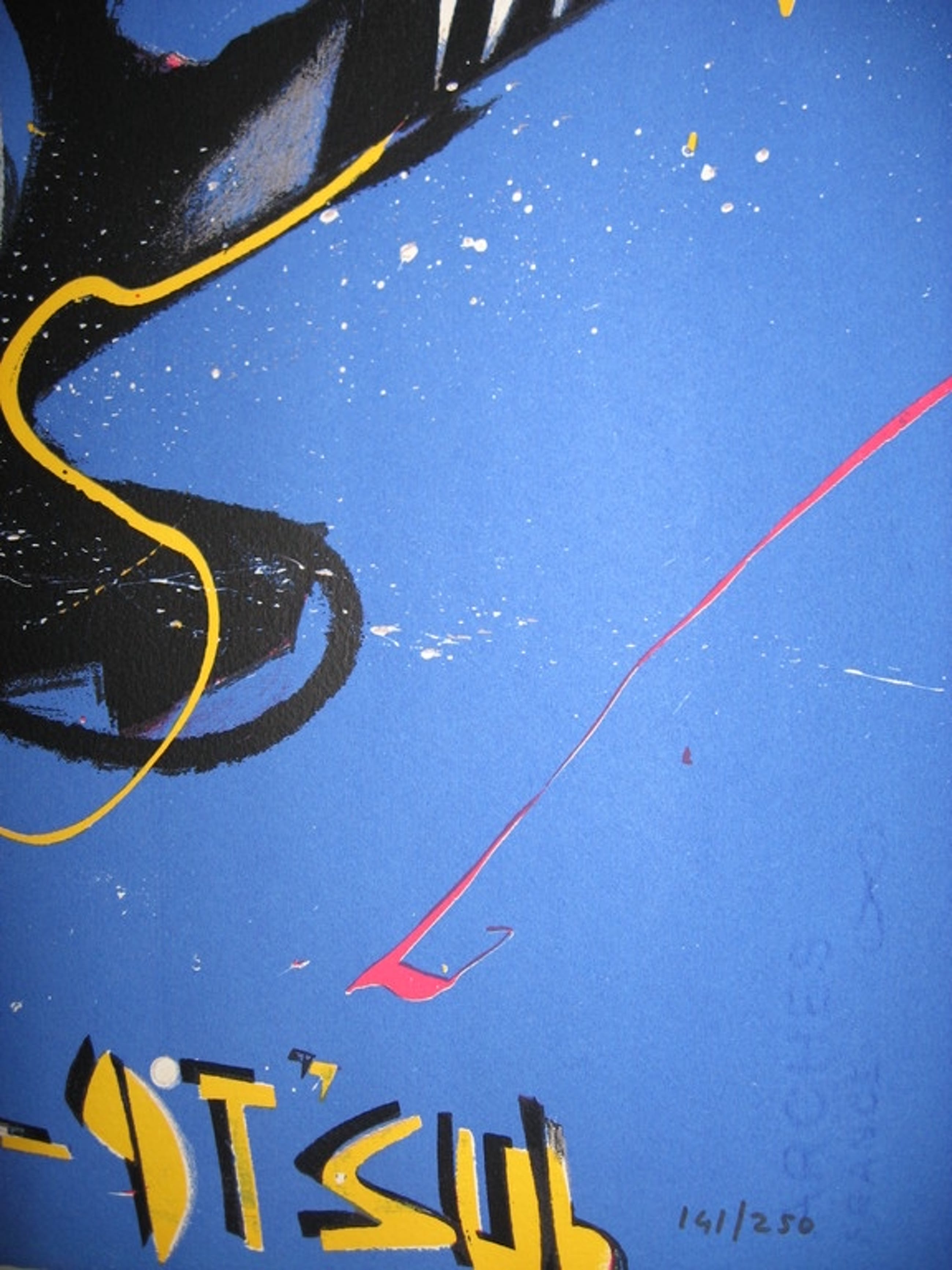 Prachtige kleurrijke zeefdruk van Brood uit de serie: 'De band'. Gedrukt op Arches papier.
