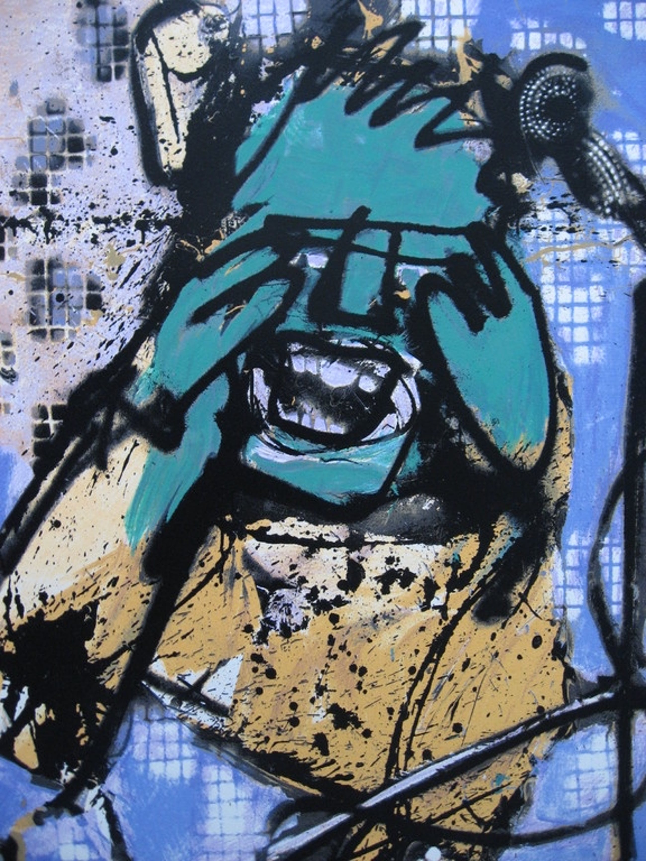 Prachtige kleurrijke zeefdruk van Brood uit de serie: 'De band'. Gedrukt op Arches papier.