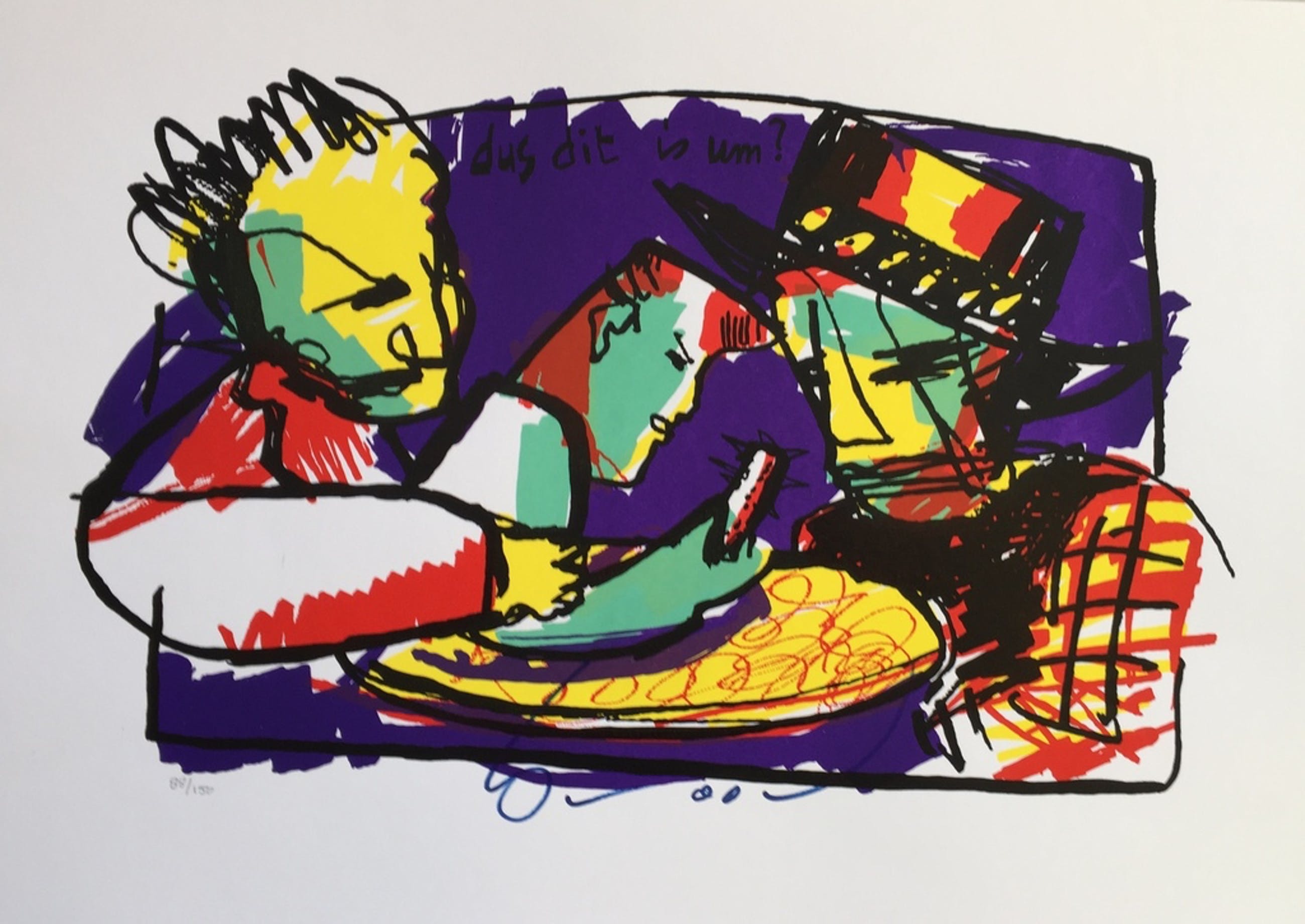 Mooie, in nieuwstaat verkerende kleurenzeefdruk van Herman Brood op dik papier.