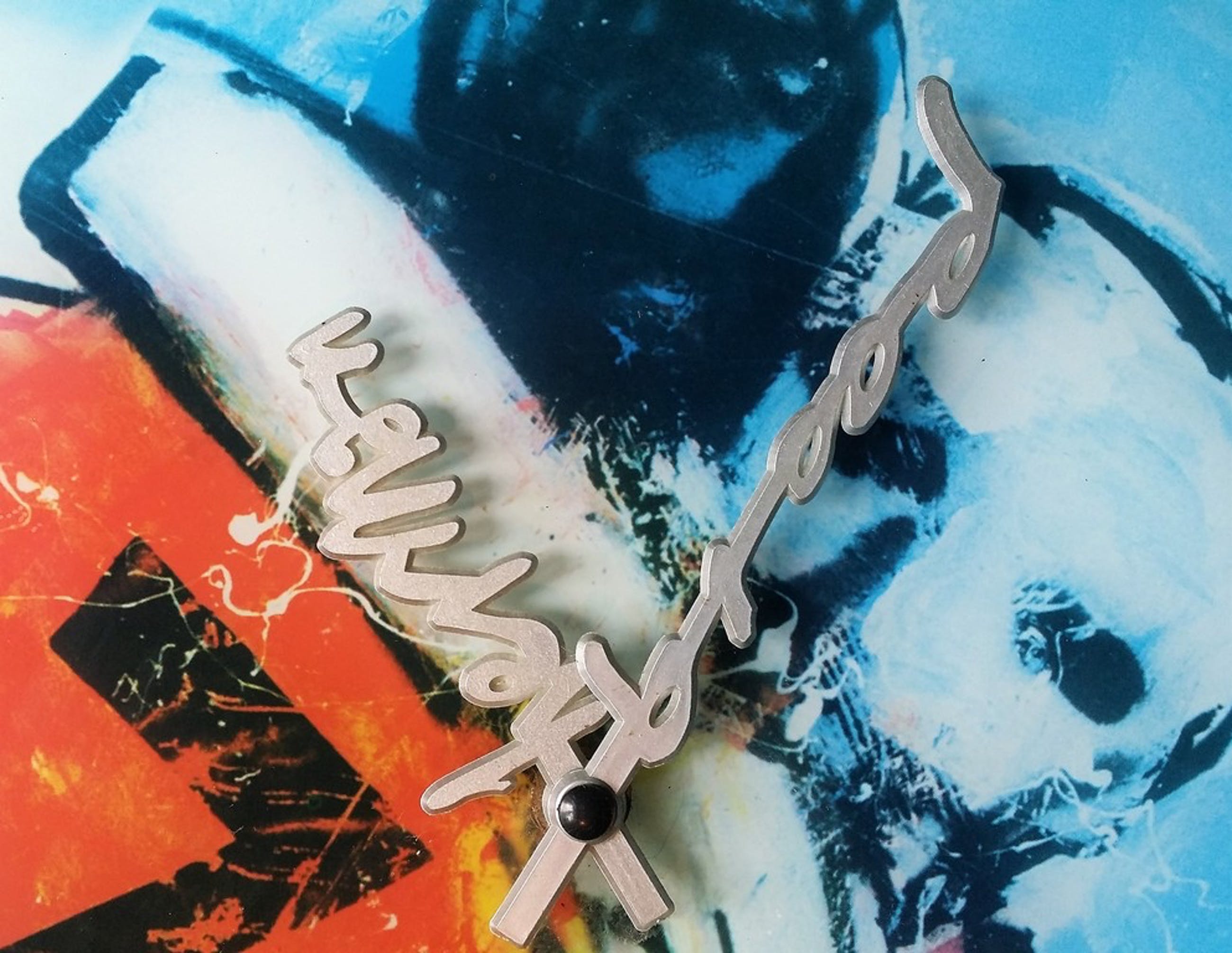 De wijzers zijn van hard plastic en vormen de voor en achternaam
