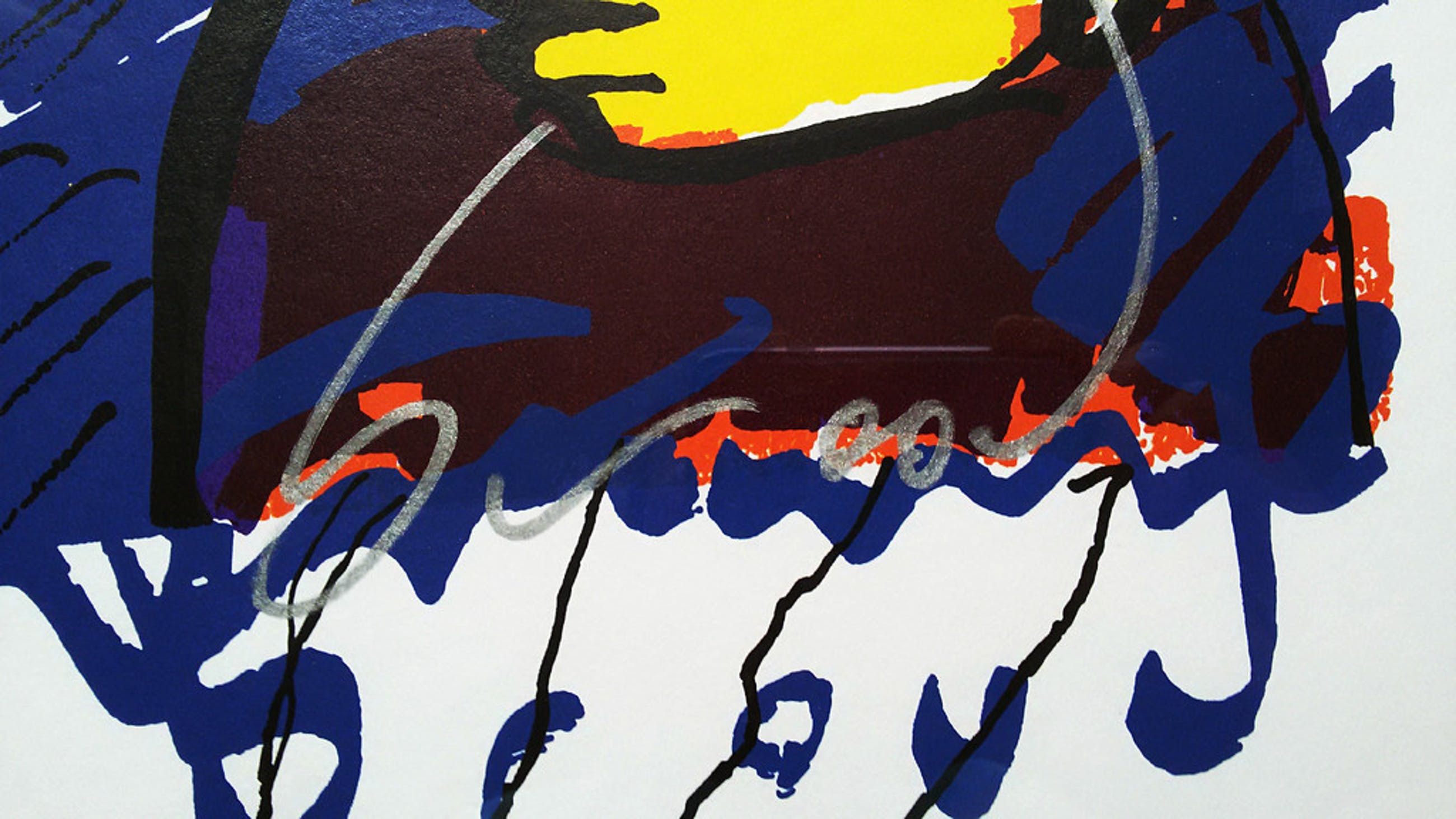 Spetterende zeefdruk van Herman Brood, met viltstift gesigneerd. Mooi ingelijst, achter glas en smetteloos, zuurvrij passe-partout. In zeer goede conditie. Een werk van Brood dat hier op Kunstveiling niet vaak wordt aangeboden.
