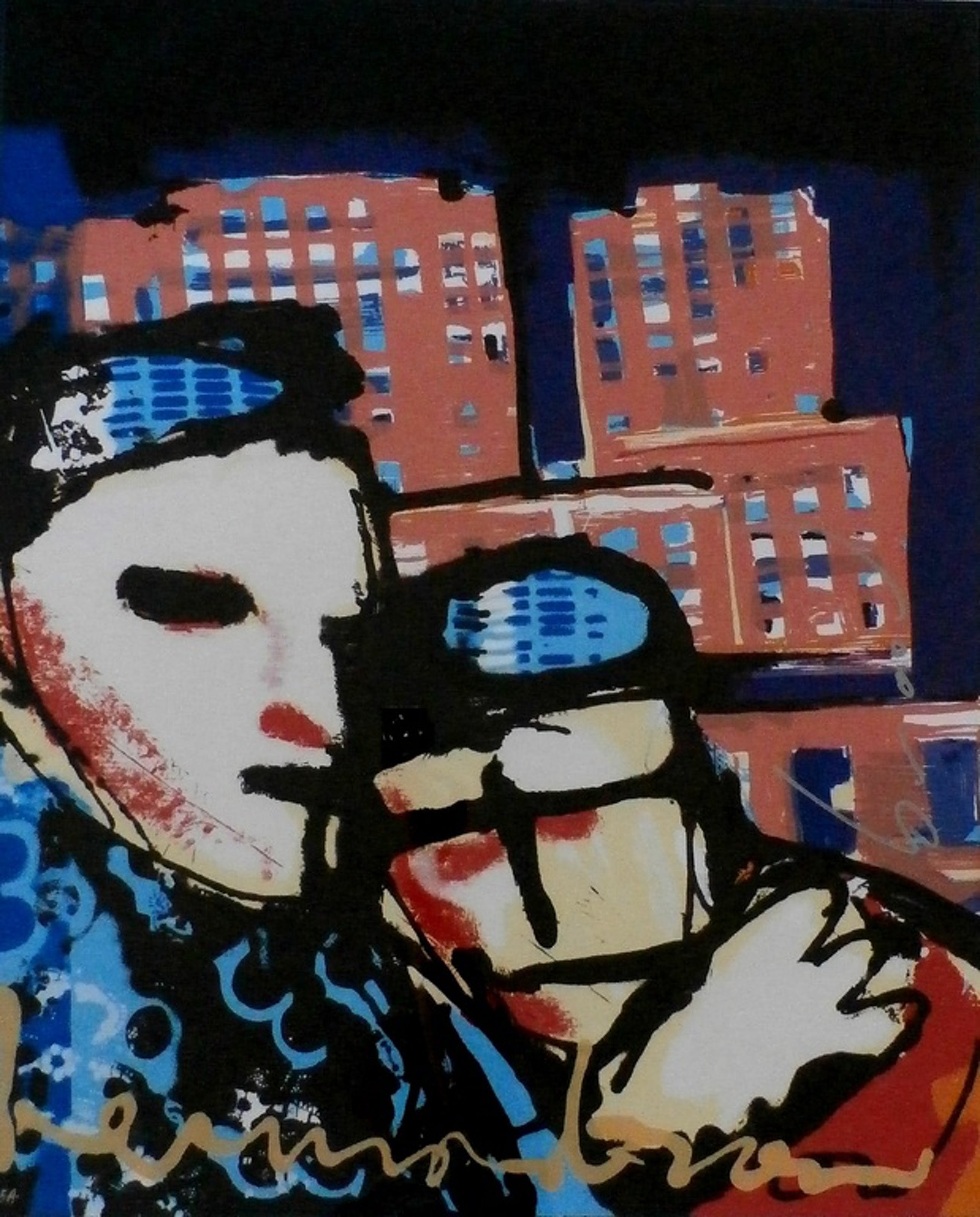 Grote zeefdruk van Herman Brood die zelden wordt aangeboden: Going to the city. Nummer: E.A. Het werk is ingelijst in een nieuwe moderne lijst. Het plastic ter bescherming zit er nog omheen. Afmetingen incl. lijst: h114 x b98 cm. Afmetingen voorstelling: h84,5 x b69,5 cm.