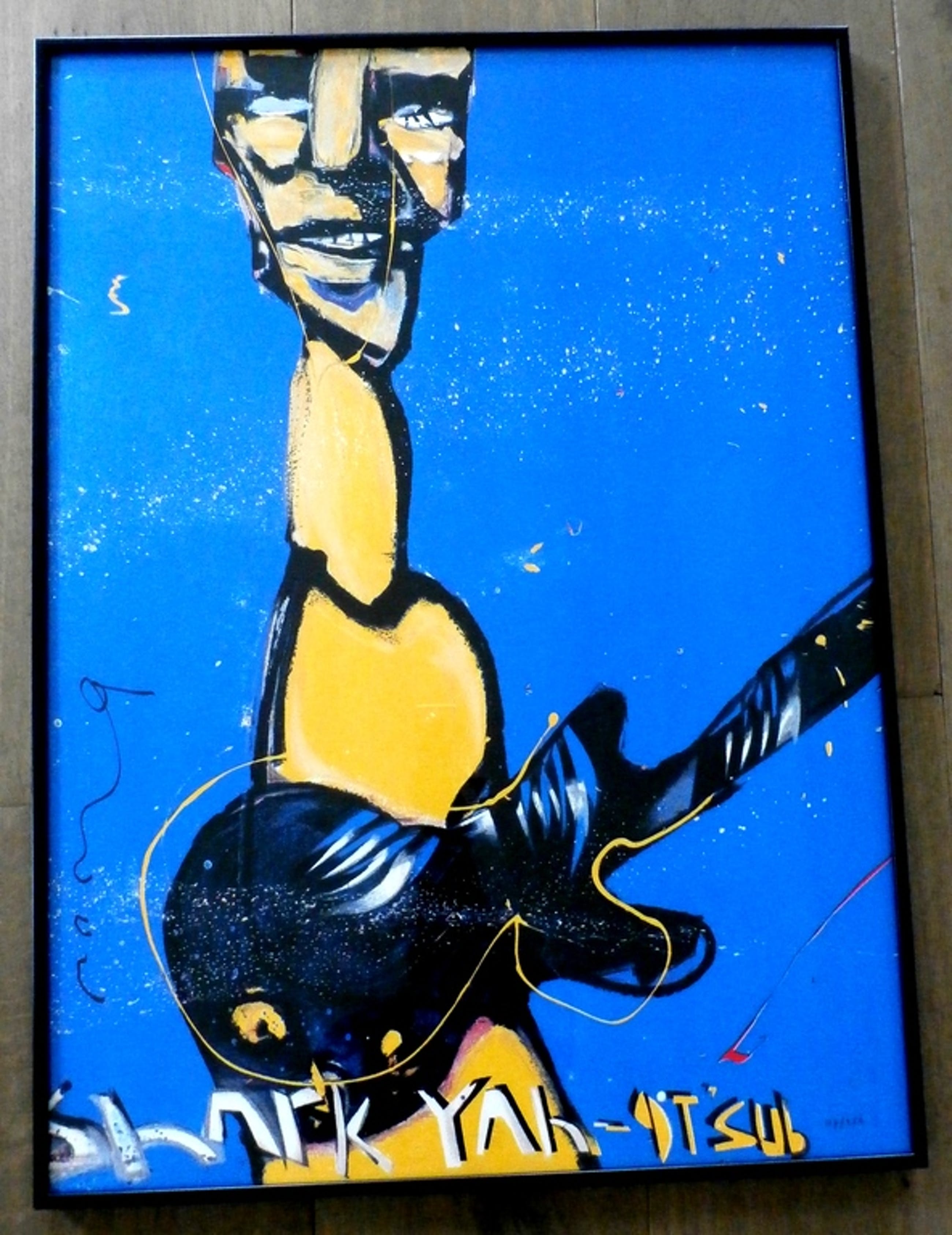 Ingelijste zeefdruk van Herman Brood. Titel: De Basgitarist (uit "Het bandje") . Nummer:117/250. Afmetingen incl. lijst: H77 x b57 cm. Afmetingen voorstelling: H75,5 x b55,5 cm. Gesigneerd door de kunstenaar aan de linker zijkant met een marker.De authenciteit van dit werk wordt volledig gegarandeerd. Een certificaat van echtheid kan, op verzoek, worden meegeleverd.