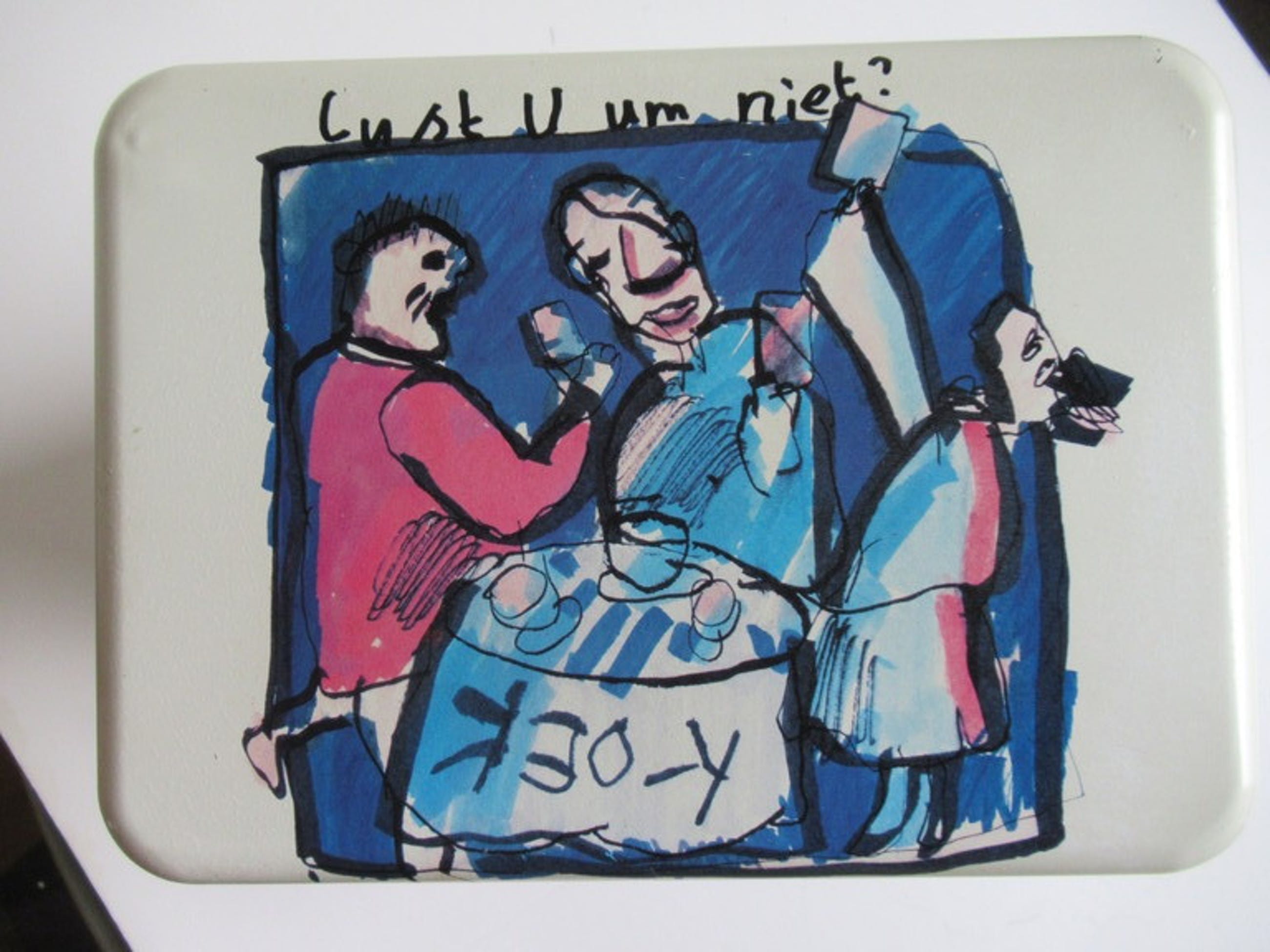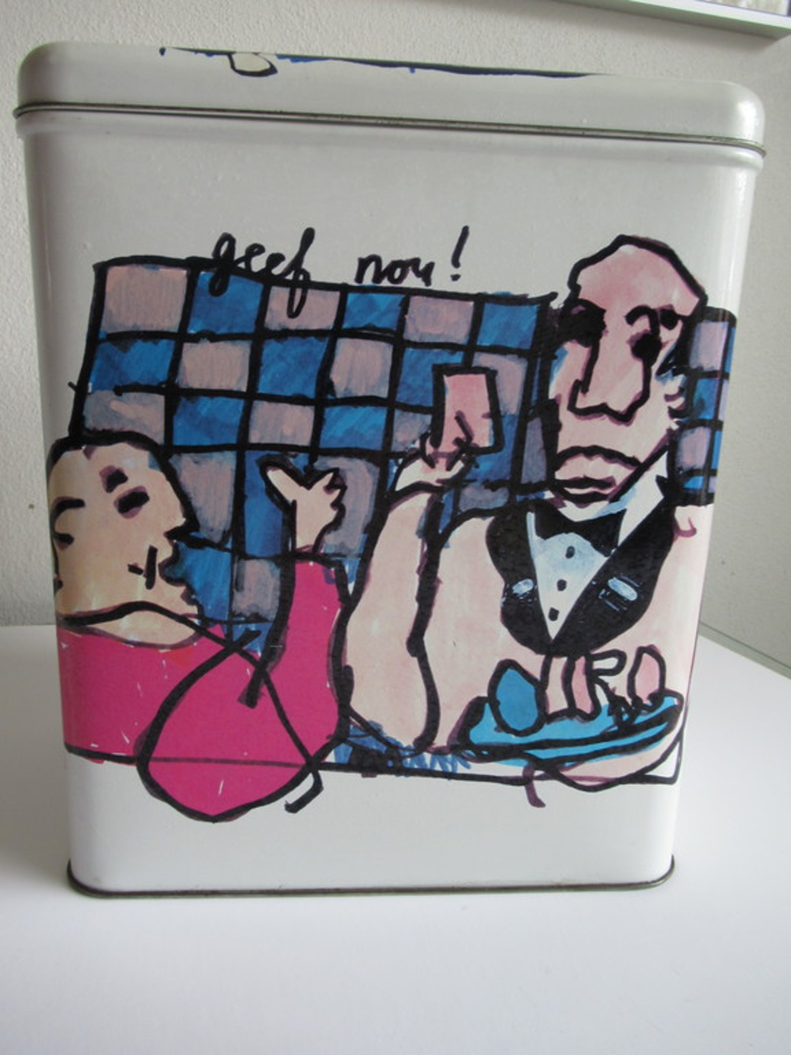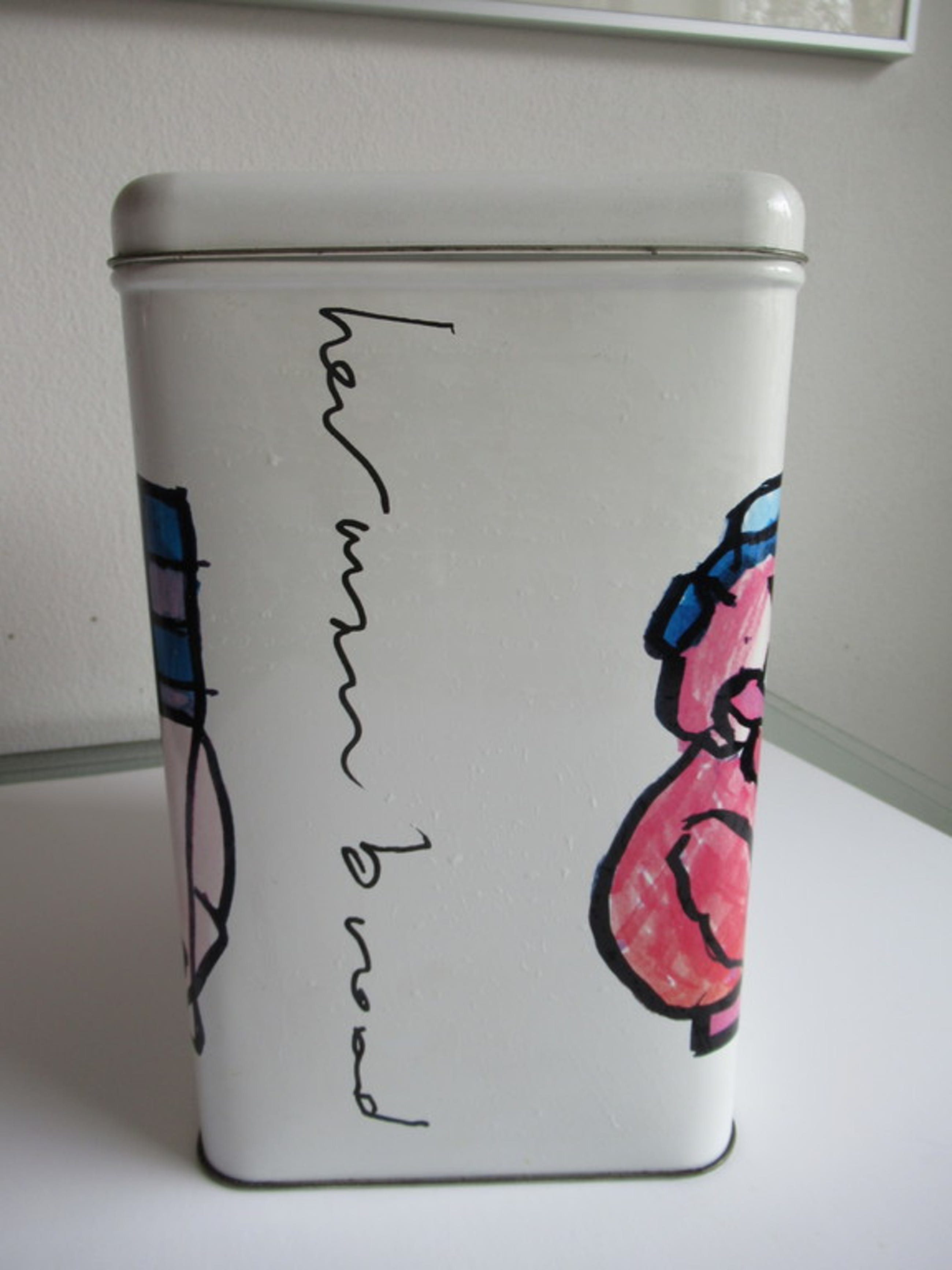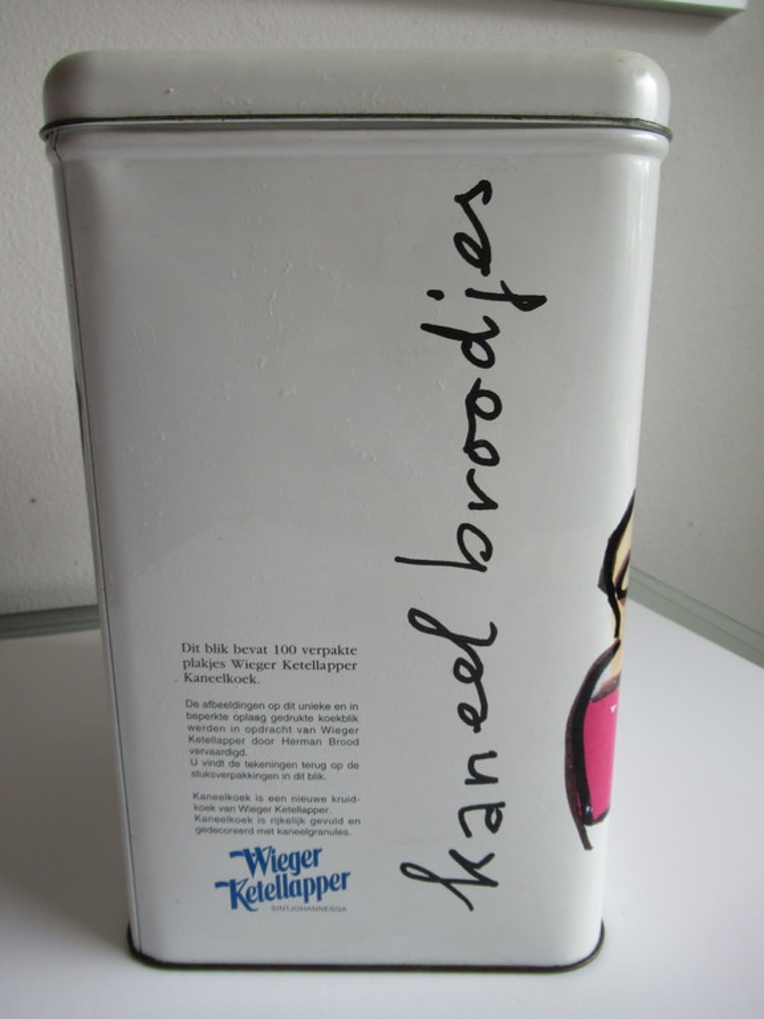 gelimiteerde oplage van het koekblik van Herman Brood. Ontworpen in opdracht van Wieger Ketellapper koek, eind jaren negentig